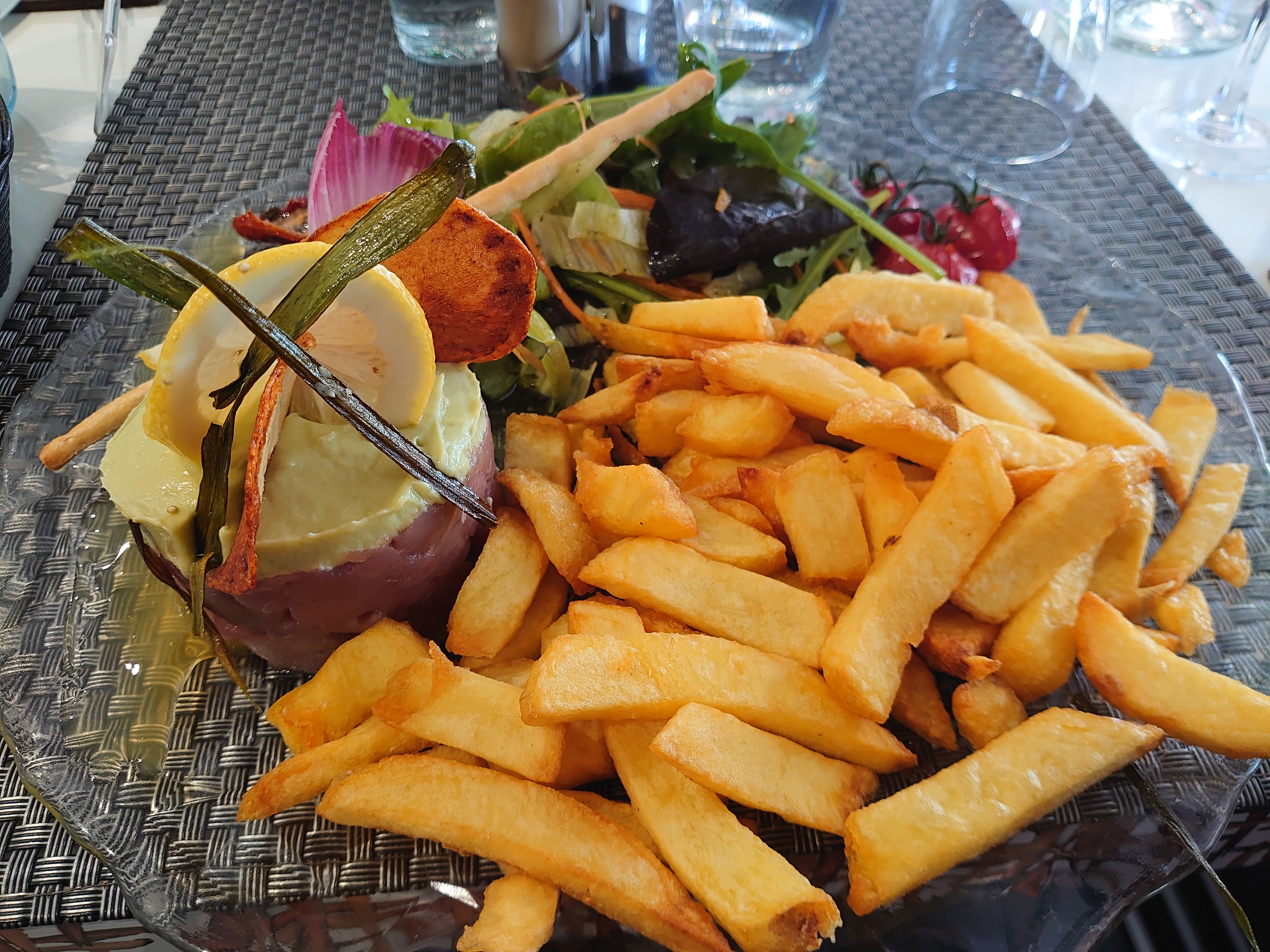 Bon accueil, 2 plats du jour et une carte variée. Terrasse agréable en saison, salle intérieure en cas de climat frais ou de très humide. Prix raisonnables. A tester.