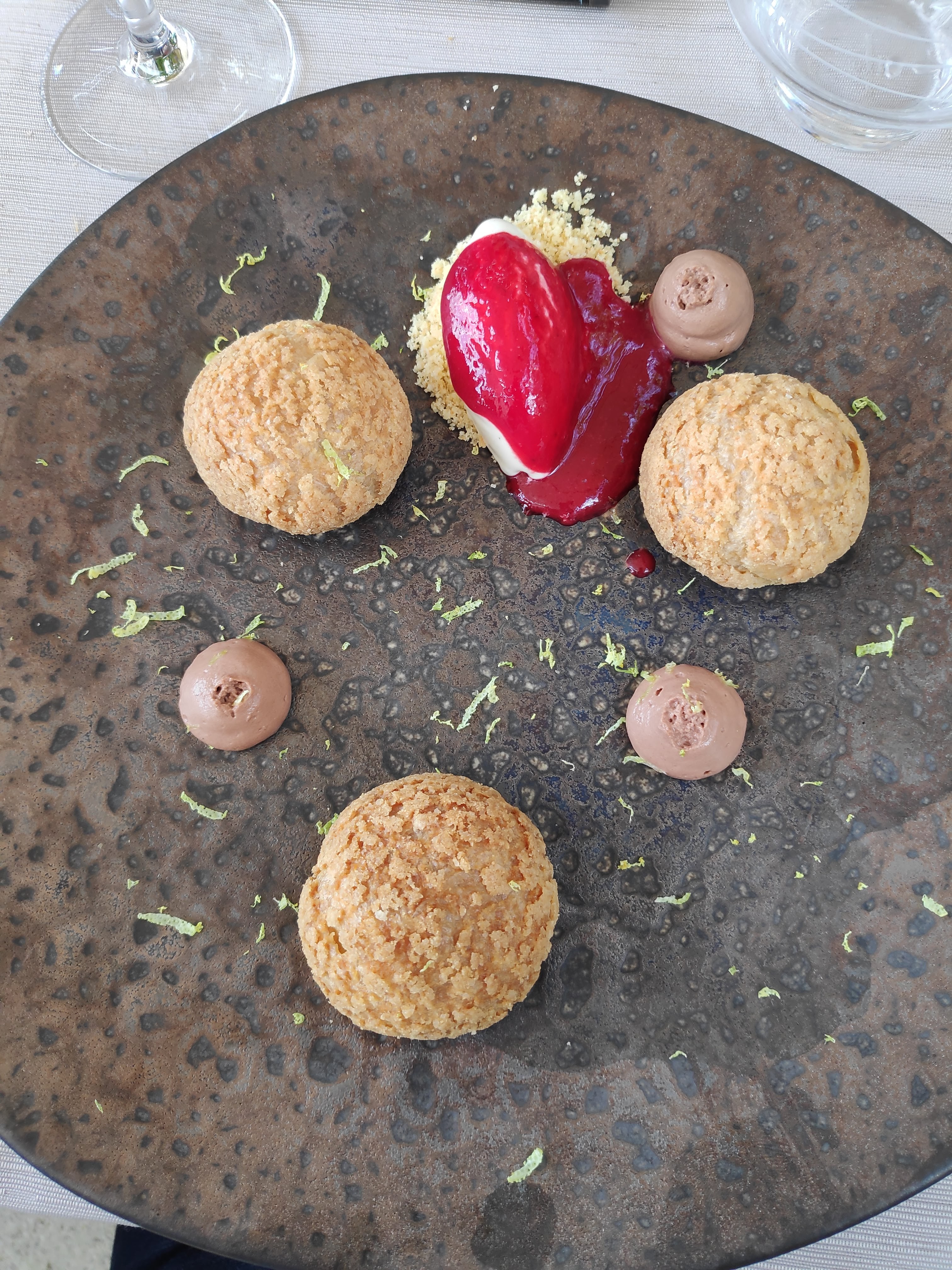 Très belle vue et beau coucher de soleil. Je n’ai pas eu l’impression d’être important en allant manger là… plutôt un sentiment de fin de service/saison, le sommelier ne sait pas si il a assez de verre lorsque vous prenez une nouvelle bouteille à 65euros… bref le genre de remarque a éviter! Cuisine fusion annonçant des classiques, le gout y est mais le foie gras, ou les fraises pas trouvées… bref ne m’a pas laissé un souvenir impérissable, par contre l’addition je m’en souviendrai!