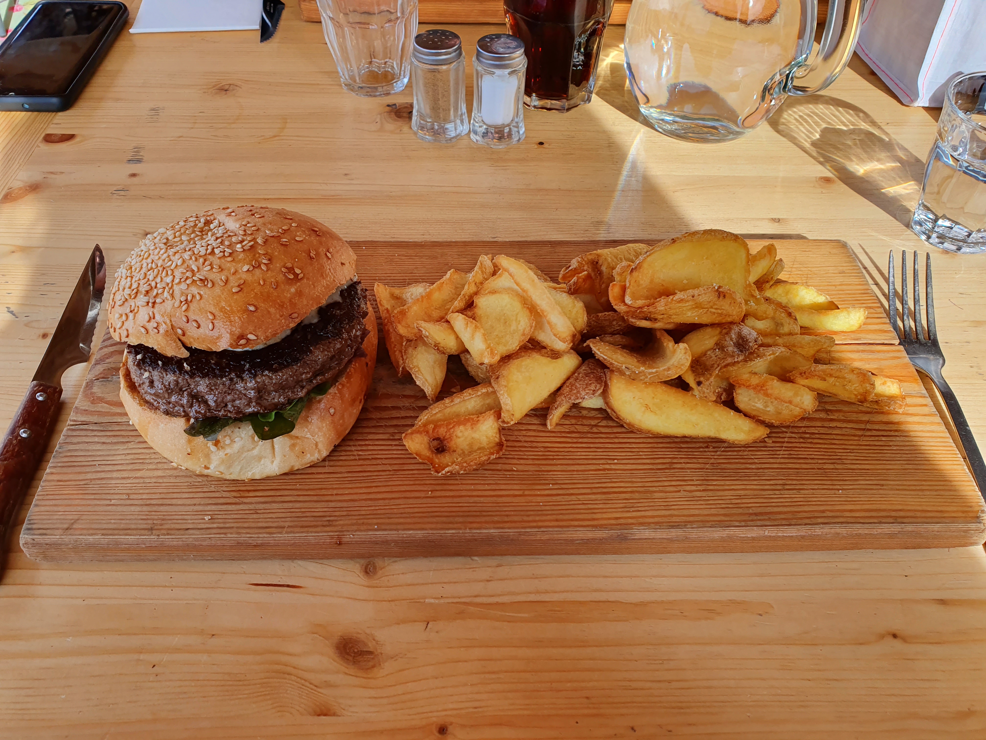 Belle adresse au soleil à Arcs 1600 Service vraiment agréable, aux petits soin et très souriant Délicieux Burger avec frites maison et sa salade Rapport qualité prix correct Jolie décoration notamment dans les toilettes