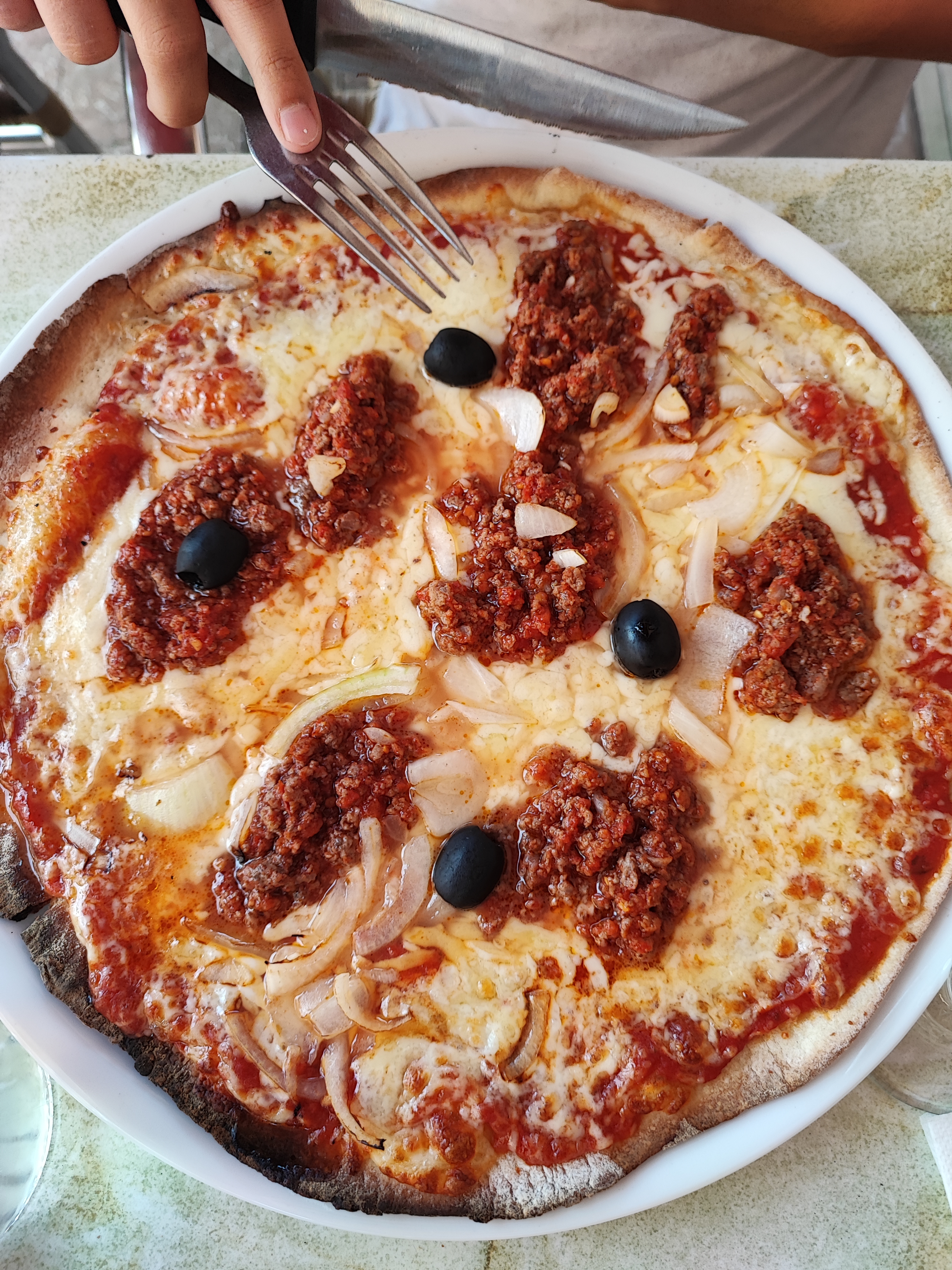 Pizza santana, et elle est tres bonne! Attention à ne pas vous faire embrigader avec les tournées de double-Ricard
