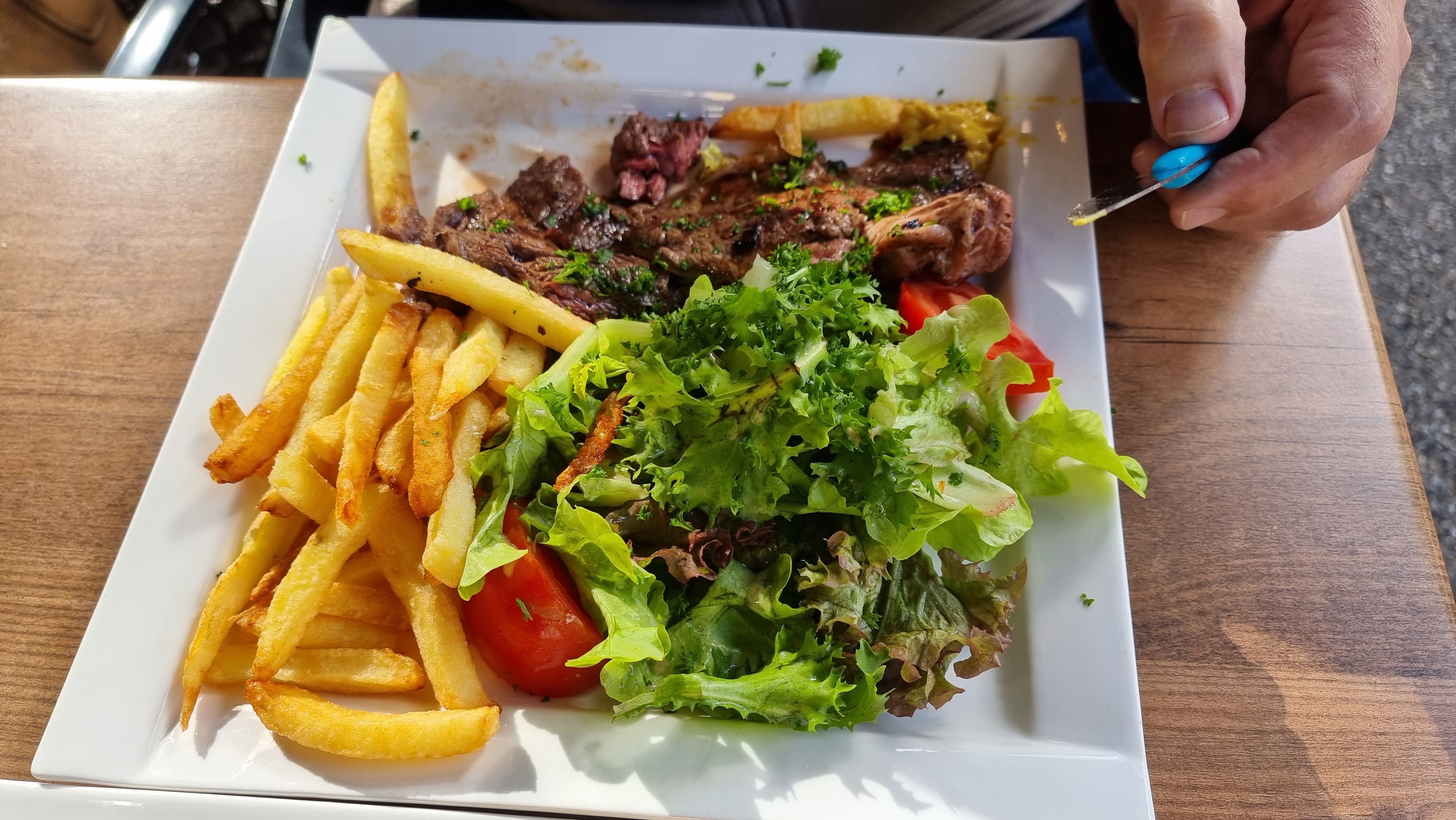 Très bien la bavette est de grande taille et se coupe comme du beurre même les frites sont très bonnes.les prix sont peu élevés. 👍