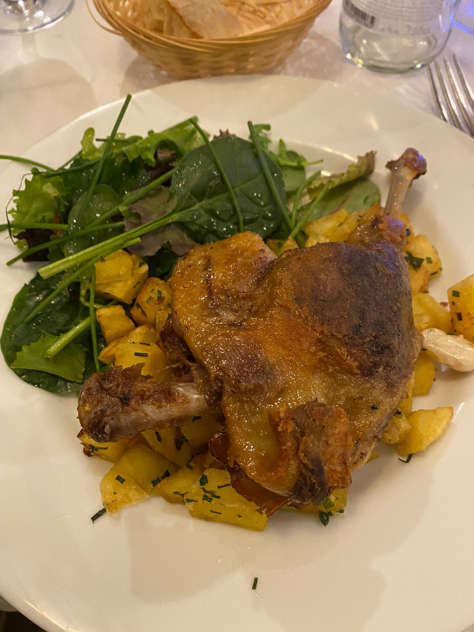 Charmant petit restaurant. J'ai commandé le canard confit et je l'ai beaucoup apprécié. Crème brûlée à partager. L'hôte était sympathique et accueillant. Ils ont embauché une serveuse autiste qui travaille très dur. J'ai du respect et de l'admiration pour cela !