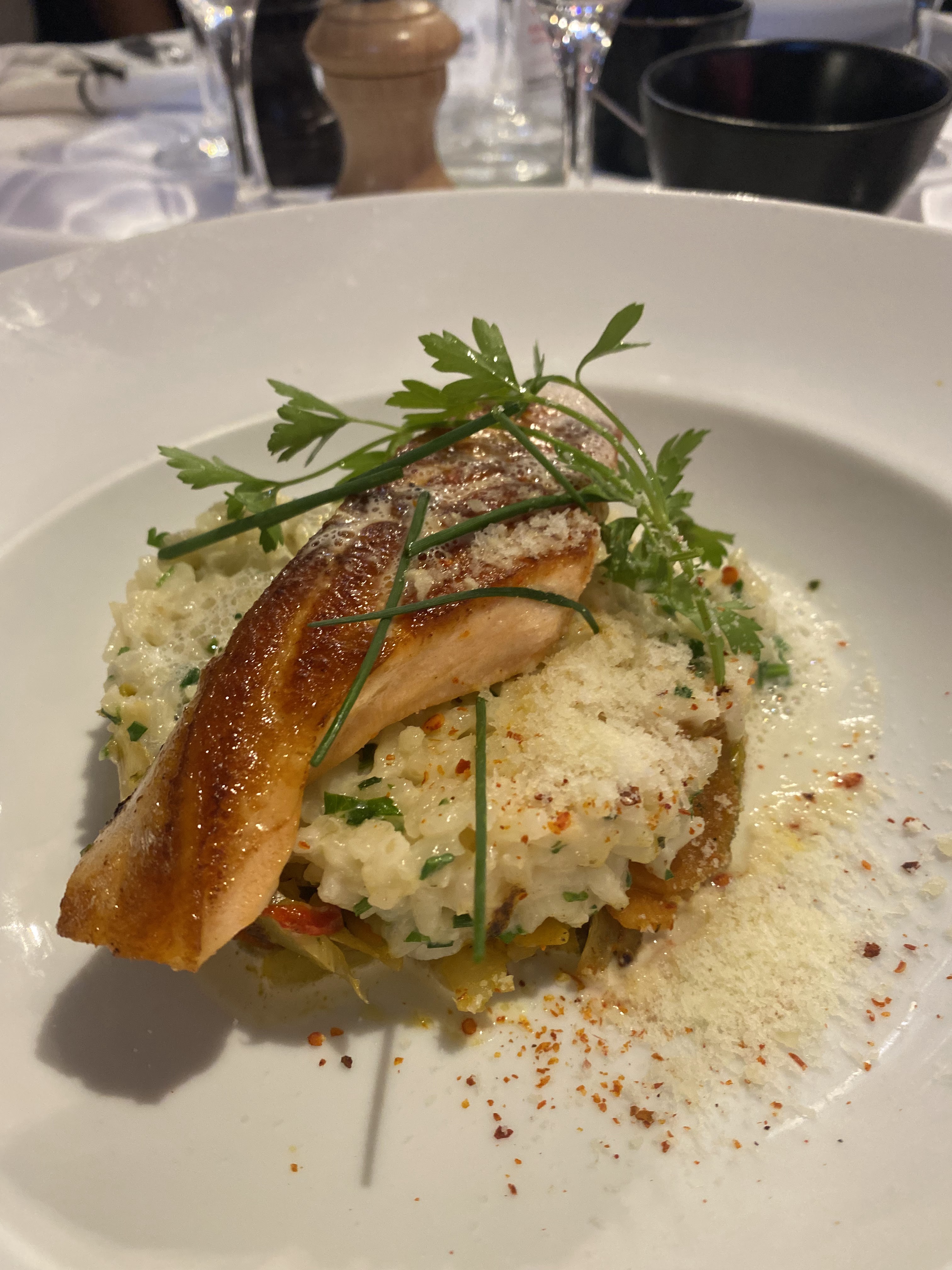 merveilleux! Le meilleur repas que j'ai eu lors de mon voyage à Paris et le prix était raisonnable. Tout était parfait. L'attente est longue pour la nourriture mais cela en vaut vraiment la peine. J'ai eu le saumon avec du risotto je crois. Le saumon était parfaitement cuit et était si savoureux et tendre. Les côtés l’ont bien accompagné. La crème brûlée était la fin parfaite d'un bon repas. Je n'avais pas l'impression d'avoir payé trop cher pour le repas comme je l'avais fait partout ailleurs à Paris. Nous avons eu la chance d'avoir obtenu une réservation à la dernière minute, mais essayez-le si vous en avez l'occasion.