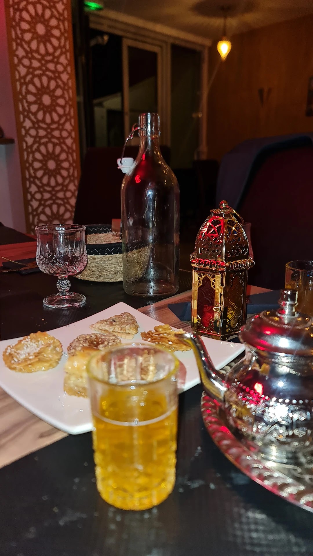 La cuisine incroyable on se sent emporter dans le Maroc le service chaleureux 🤩 vraiment je recommande 👍