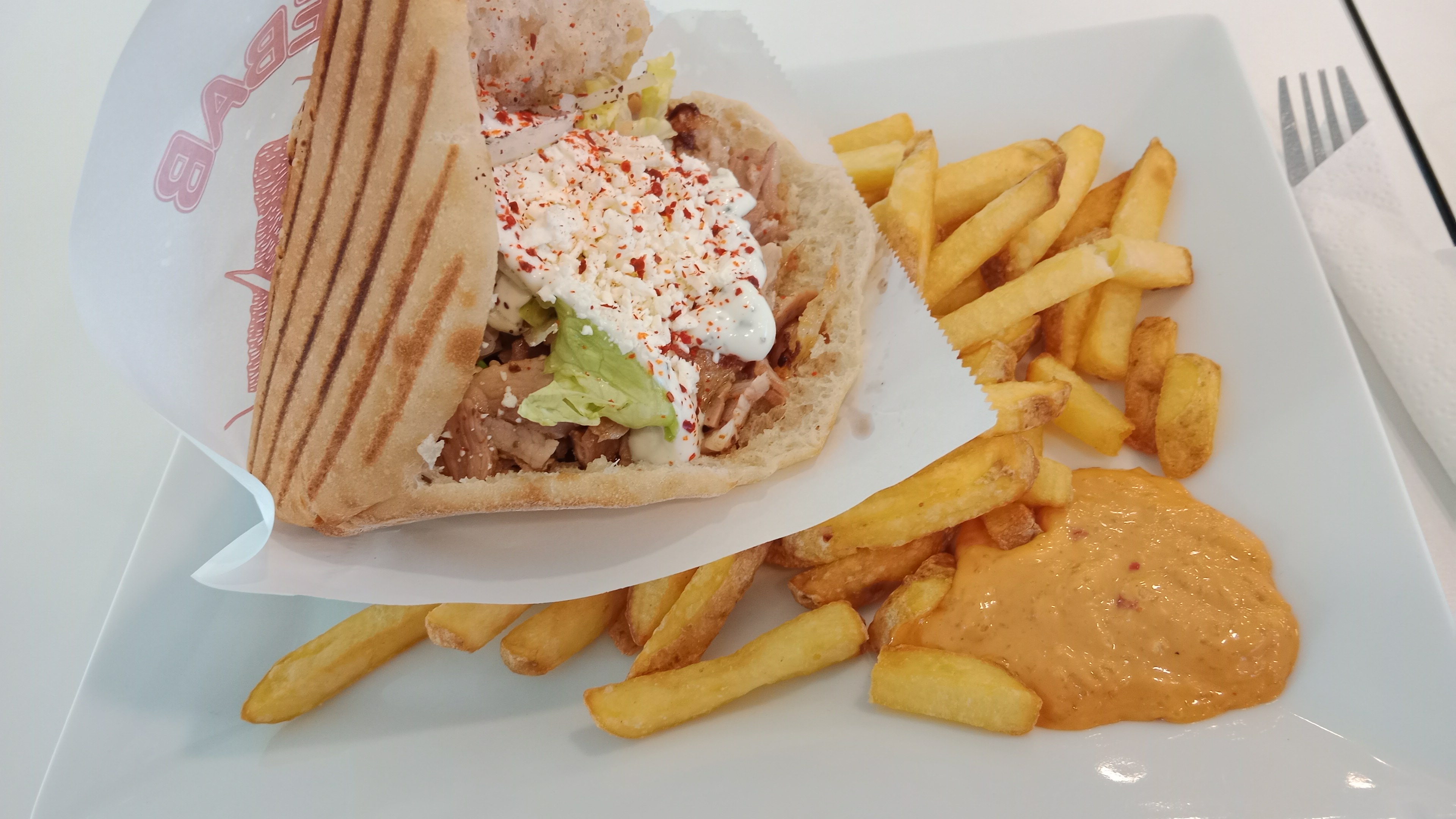Les + : personnel sympathique même s'il a l'air amateur, lieu très propre, l'emplacement au centre ville est top Les - : un banal grecque ou kebab et rien de plus, quel dommage! Le menu mérite d'être étoffé pour répondre à la clientèle (familles, enfants, jeunes sortants de la piscine notamment). À mon sens, L'emplacement et la superficie sont sous-exploités, aucune déco.
