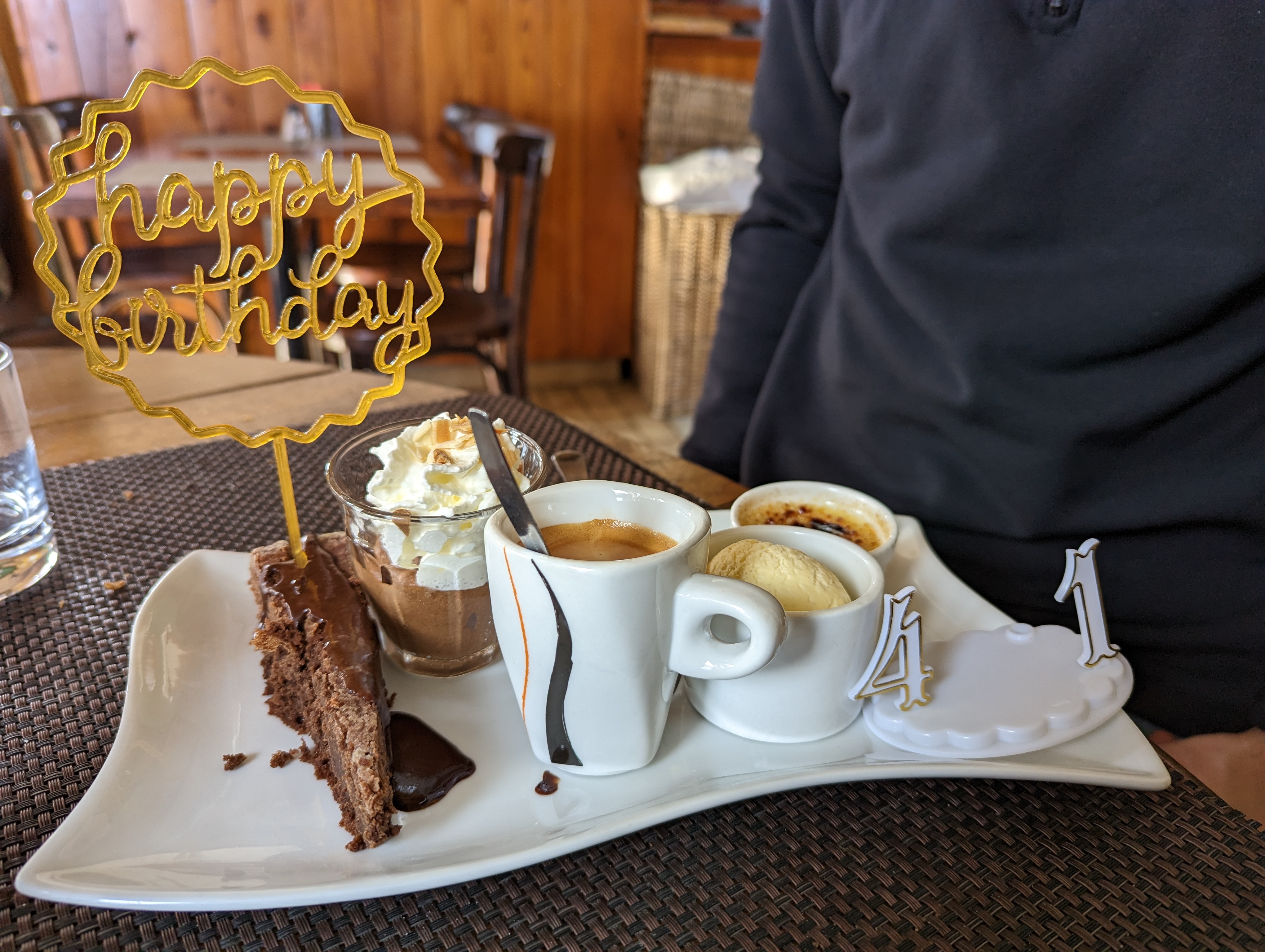 Belle découverte ! Superbe petit restaurant à l'écart du tumulte de Valberg avec une très jolie vue. Et surtout un repas sans une fausse note. Mention spéciale pour les gnocchis (maison) à la daube. Café gourmand vraiment au top. Vrai pain de campagne (ça fait plaisir!) et enfin un resto qui propose dans son menu enfant autre chose que des frites (surtout lorsqu'on a un enfant qui n'aime pas les frites....! Notre fille a adoré les lasagnes maison). Serveuse très aimable et agréable, joli déco rustique ambiance montagne assurée. Nous reviendrons dès que nous en aurons l'occasion c'est sûr.