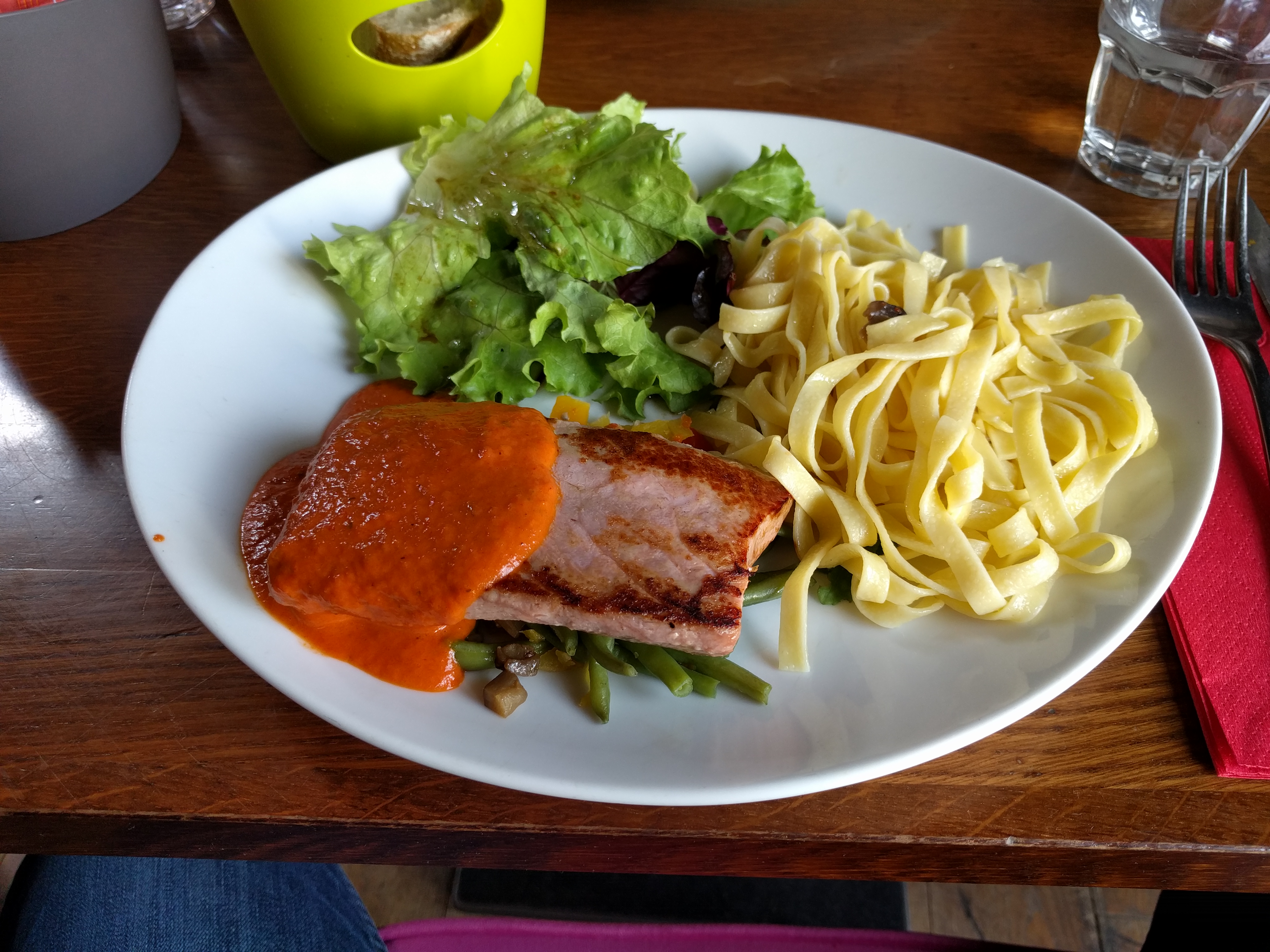 Excellente nourriture fraîche. La carte est courte et originale, ce qui est toujours bon signe. Le lieu en lui-même est à voir absolument, avec une architecture très particulière et impressionnante.