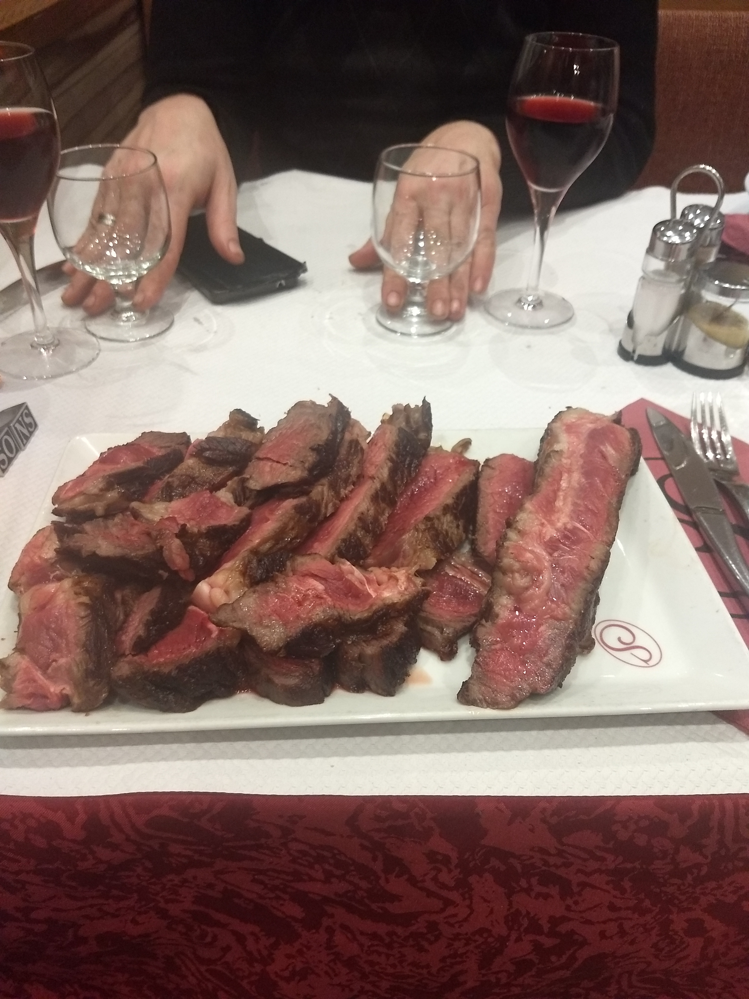 Entrecôte pour 2 personnes et profiterole a 2 boules...absolument parfait pour un repas pour 2 personnes gourmandes. Super restaurant!