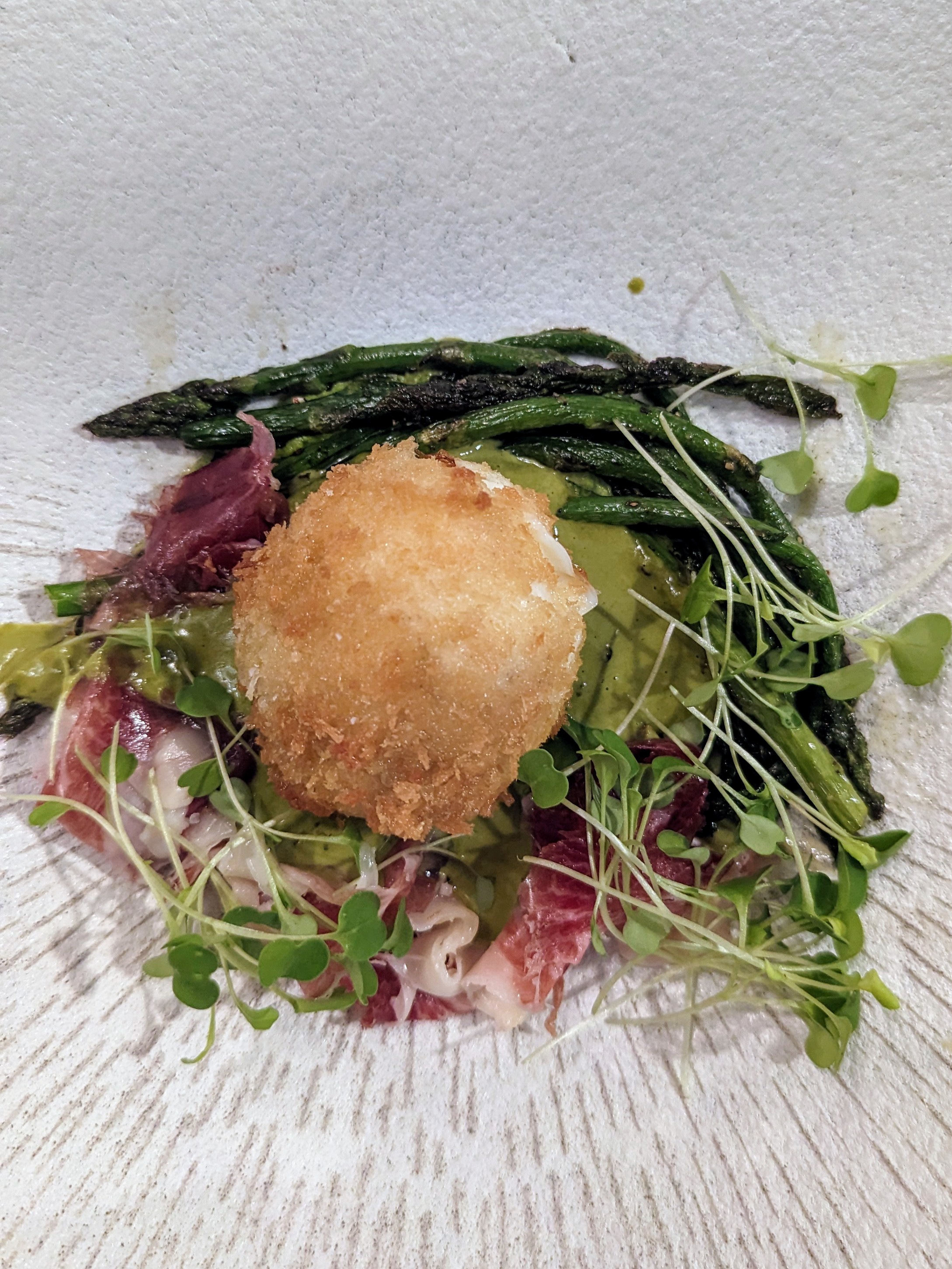 Expérience gastronomique exquise - j'ai eu la langoustine frite, la morue et les pêches sanglantes. Belle ambiance. Le propriétaire est également une personne très sympathique.