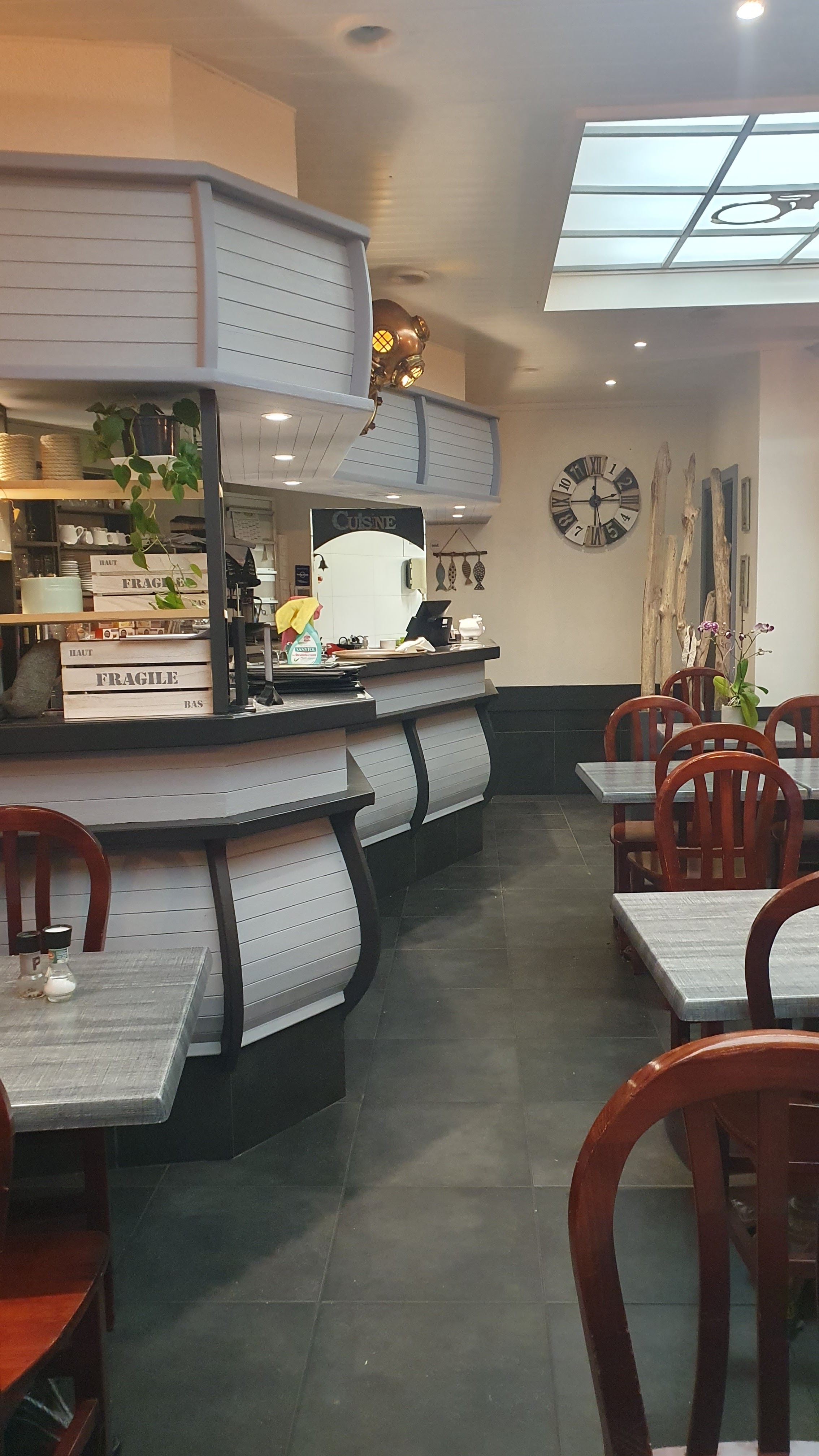 Une façade sans charme mais une fois dedans la terrasse est agréable. Une carte un peu réduite mais beaucoup de poissons et un menu imbattable J ai pris un merlu délicieux et une crème brûlée très réussie. On a des crevettes, des profiteroles qui sont aussi délicieuses L accueil est souriant et efficace. Une belle adresse où l on fait du « frais ». Les vins sont à des prix tout-à-fait raisonnables Parking devant .