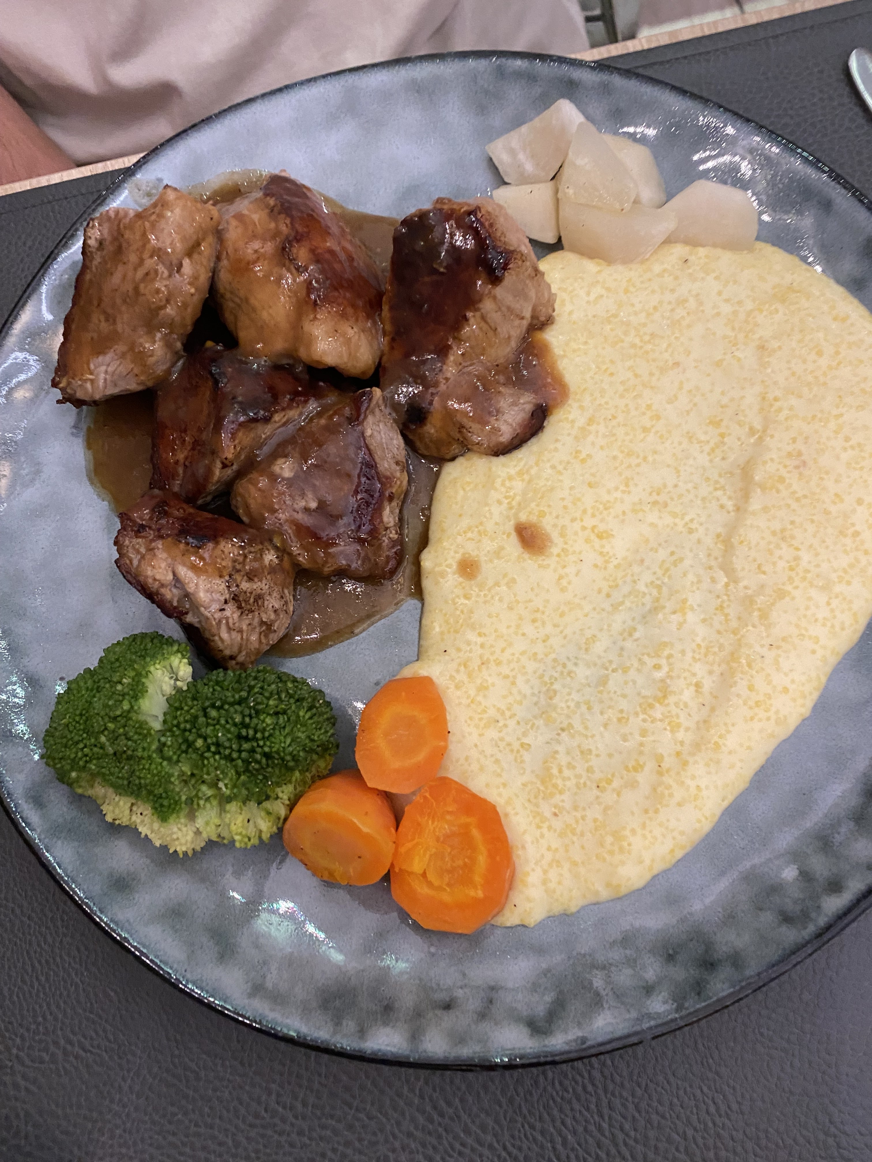 La nourriture est savoureuse, mais le prix est presque le même que celui d'un restaurant classé au guide Michelin, pour ce prix-là, on s'attend à beaucoup plus en termes de qualité, de service et d'ambiance. 2 plats (poisson et poulet) que nous avons commandés ont la même sauce et les mêmes accompagnements. Le dessert est ok, le chocolat est classique, la glace caramel est un peu décevante, en dessous de la moyenne.