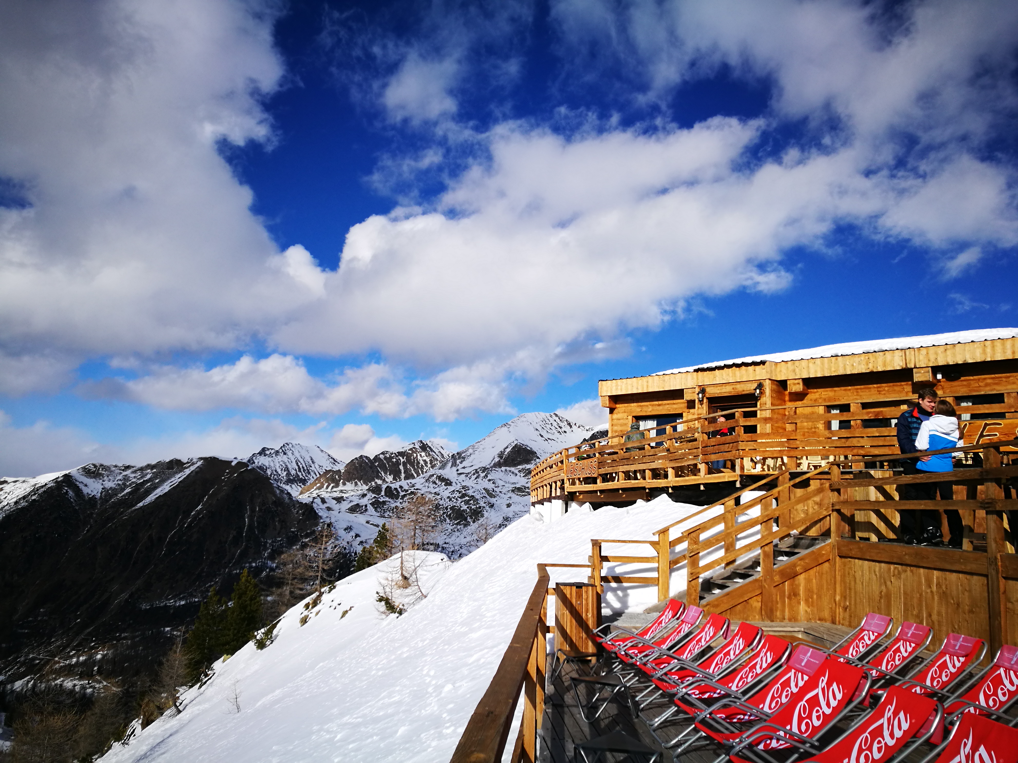 Il y a beaucoup d'attente mais les plats sont bons et les terrasses sont en plein soleil avec des vues magnifiques sur les montagnes.