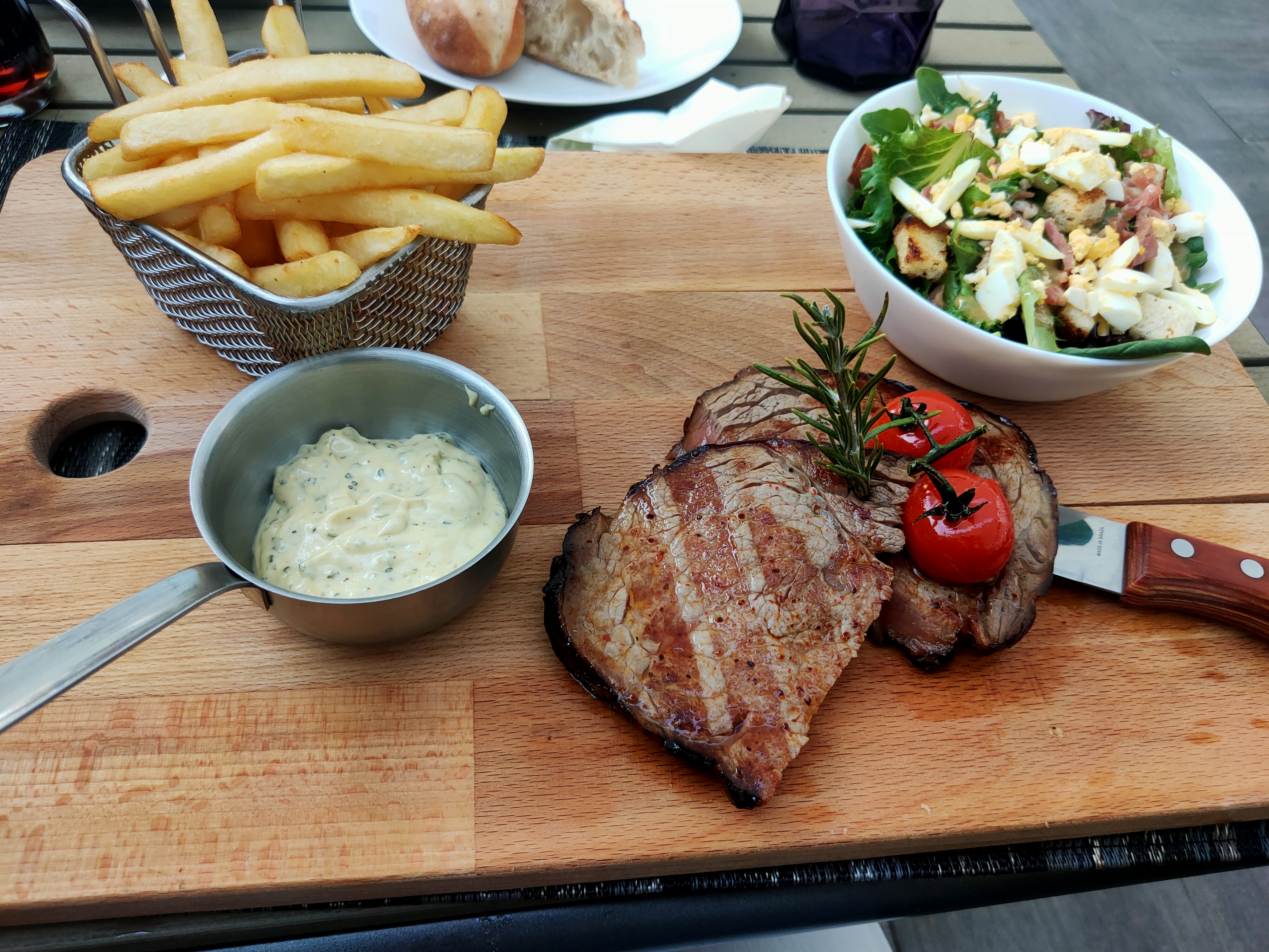 Encore une belle découverte pour ce restaurant ce situant à Mulhouse. Accueil très chaleureux, belle décoration. Nous avons commencé par un petit apéro, nous avons opté pour le cocktail Secret (à vous de découvrir de quoi il est composé...🤫🤫🤫). Ensuite j'ai dégusté cette très belle côte de bœuf😋😋😋 qui était à la carte ce jour ci. La cuisson bleue bien respecter. La sauce accompagnant les frites est excellente 👍👍👍 ainsi que la salade. Le vin était également très bon. Nous avons été rassacié si bien que nous n'avons pas pris de dessert. Et pour finir un superbe Irish coffee, très très bien servi. Une très bonne expérience pour un prix raisonnable.