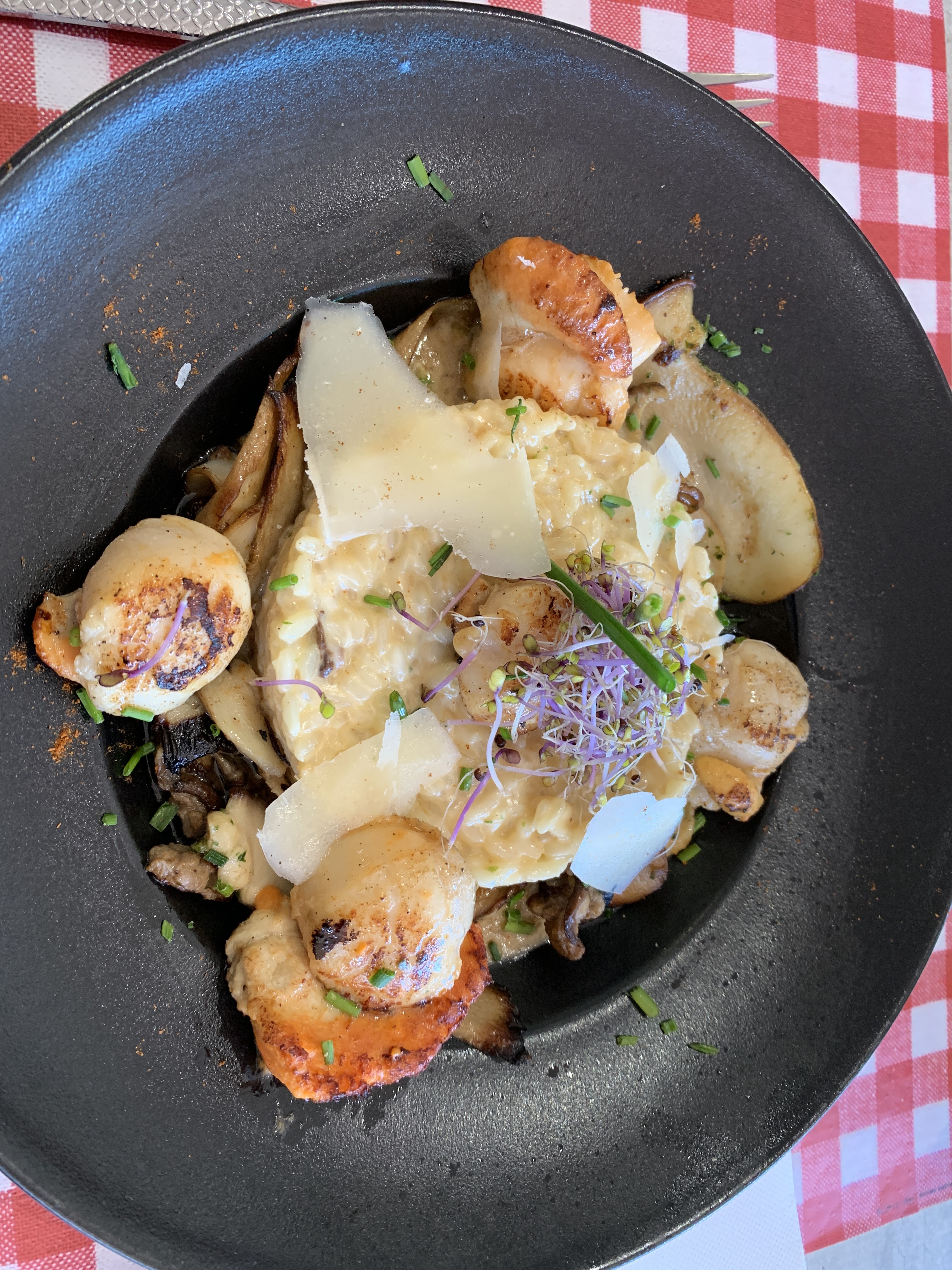 Superbe risotto aux saint Jacques et giroles. Une explosion de saveurs pour les papilles. Merci !!