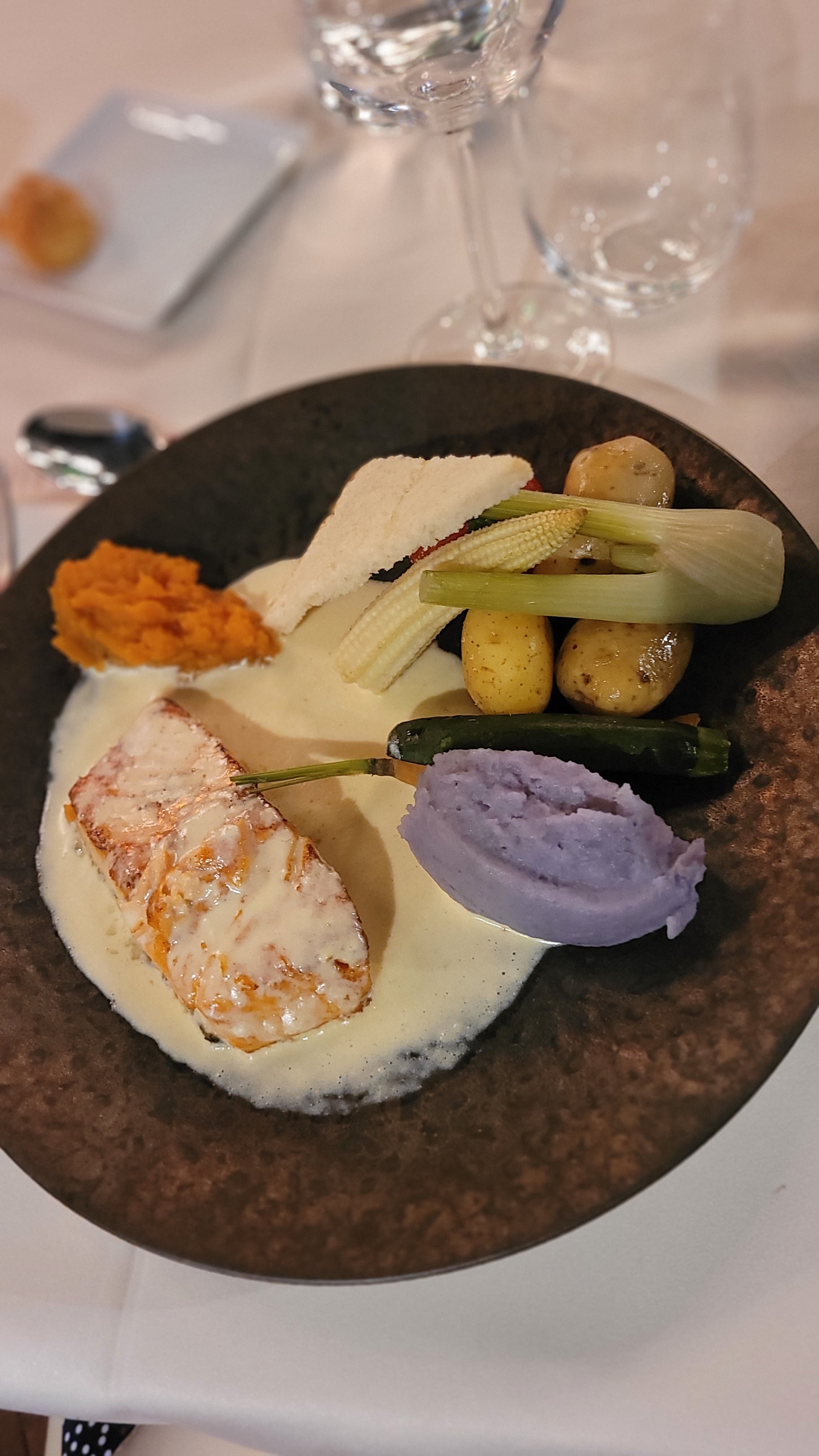Très bon repas. Quelques couacs sur le service : erreur de plat ( j'avais choisi poisson, mais bon, comme j'avais beaucoup hésité, j'ai gardé le coq au vin quand même) et un des deux vins apportés n'étaient pas celui choisi. C'est dommage car cela terni un peu la soirée quand même , même si tout était excellent.