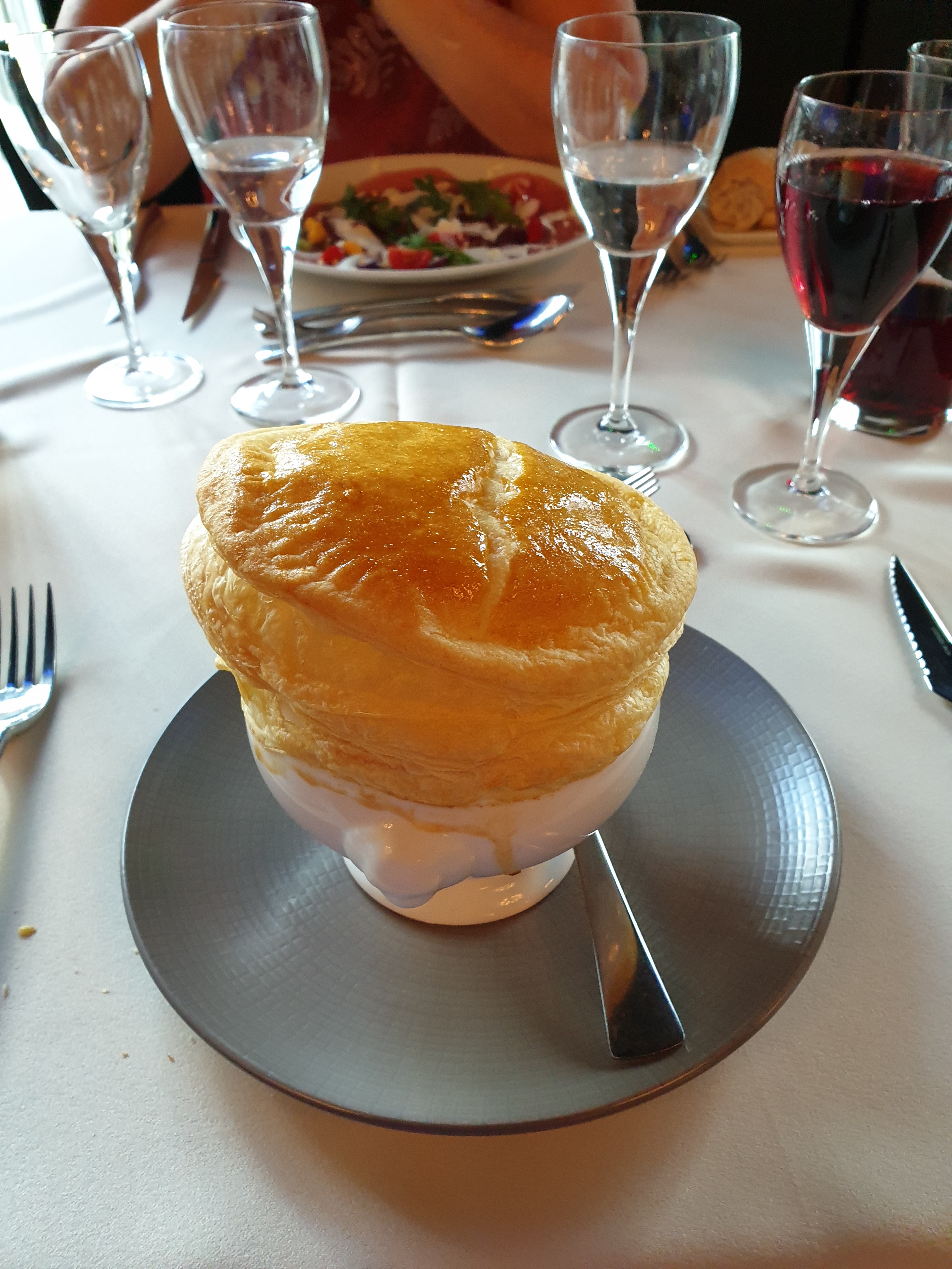 Très bien au niveau du repas. Spectacle un peu décevant car uniquement du chant toute la soirée et le spectacle n'a eu lieu qu'à la fin du repas et rien entre les plats.