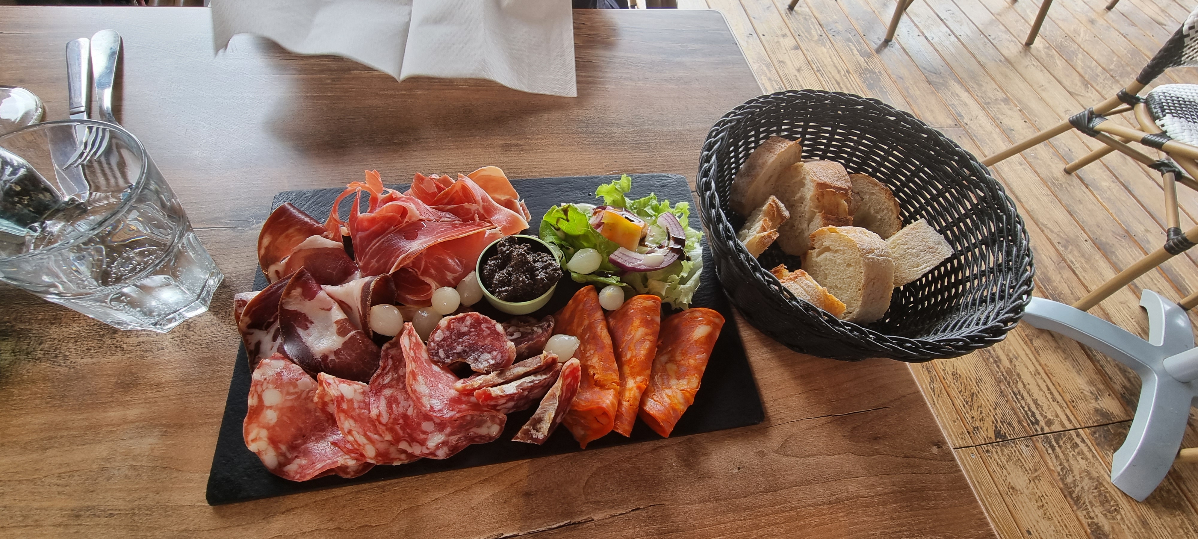 Plancha de charcuteries...et plancha de fritures.... Ça passe. Il y avait l entame des charcuteries et des tranches plus sèches.