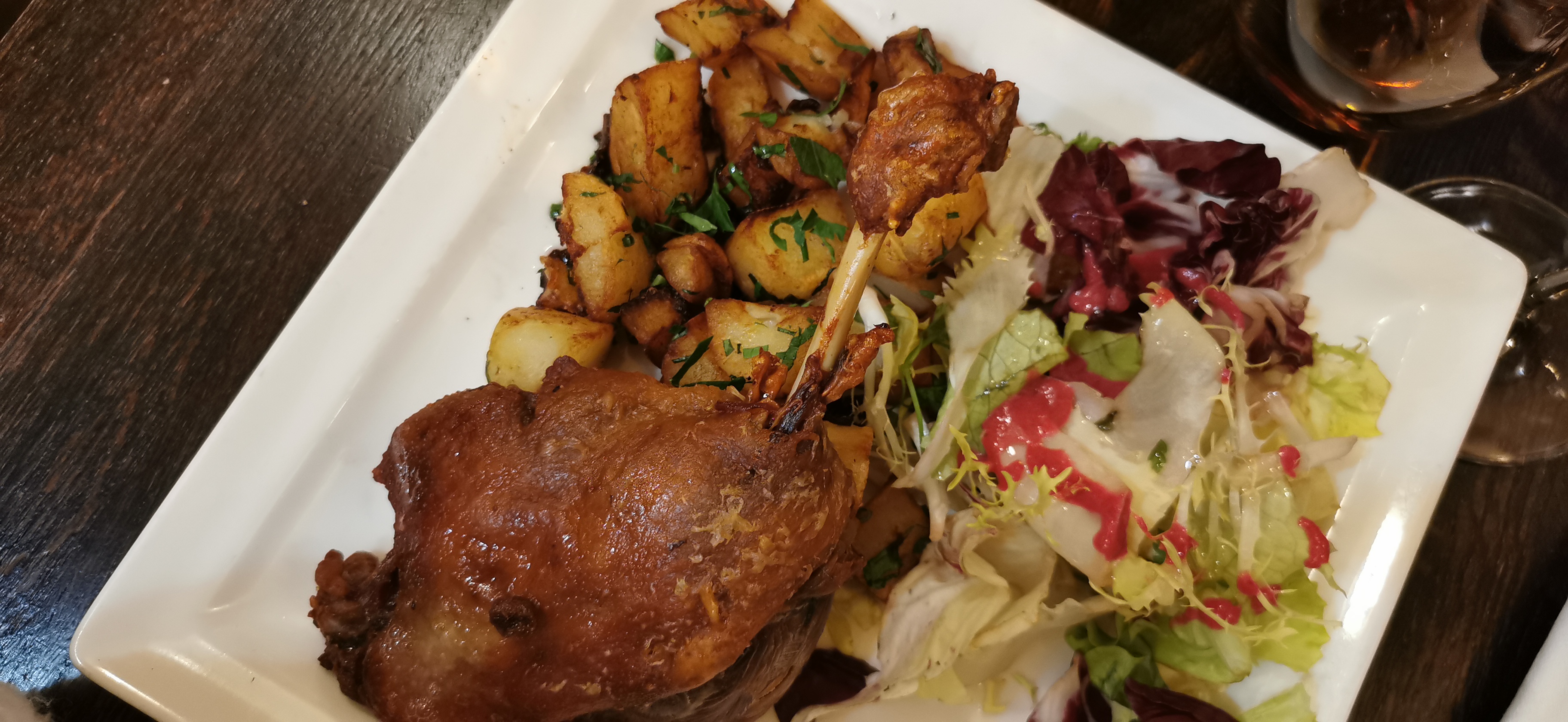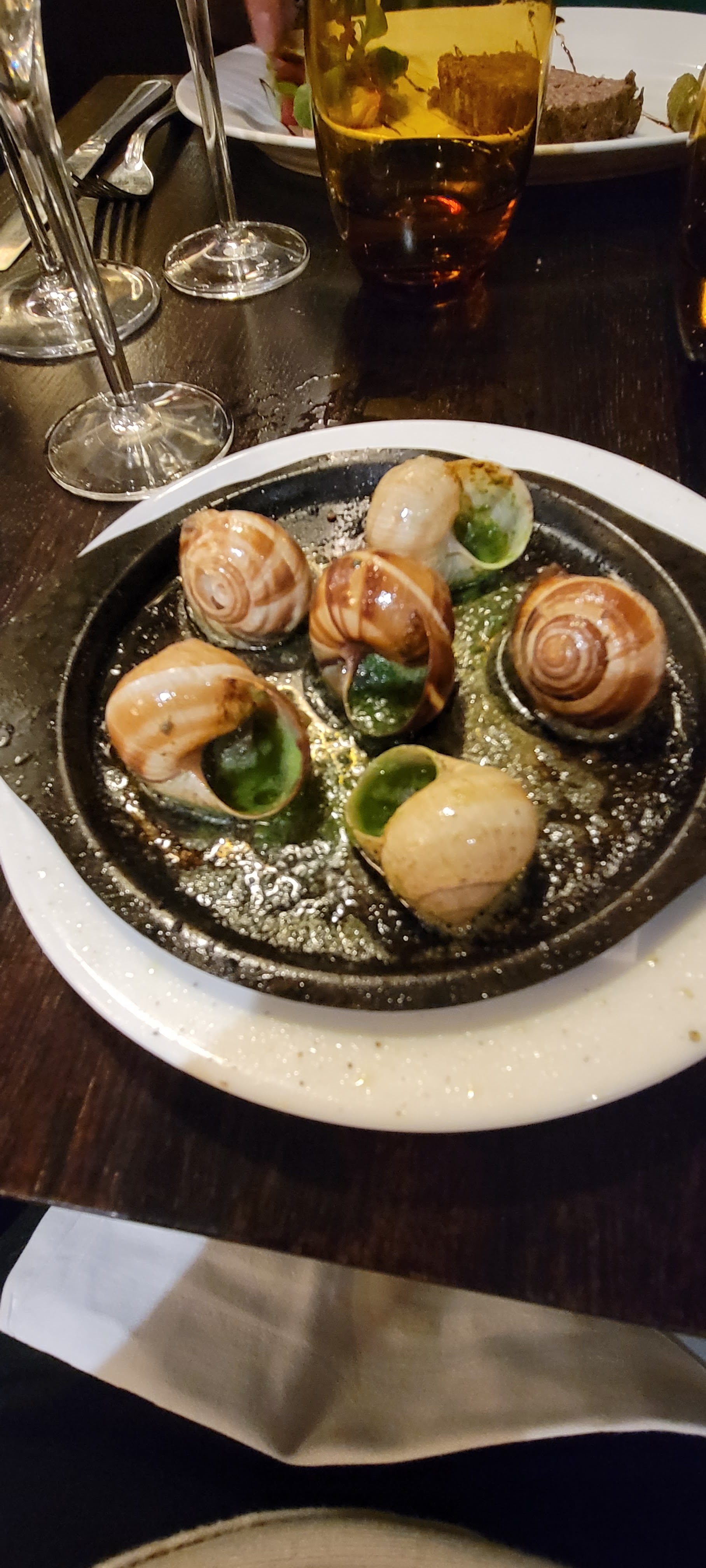 C'est un endroit charmant. Le personnel était très accueillant tant que vous êtes poli avec eux. Les escargots étaient délicieux, le steak de veau était bon. Mais le point culminant était les gambas avec du riz au safran. J'en ai encore des envies ! Ça vaut le coup d'essayer si vous restez à proximité et avez besoin de manger ! **Mise à jour : j'y suis retourné une 2ème fois et c'était toujours aussi bon. Le confit de canard était vraiment bon !