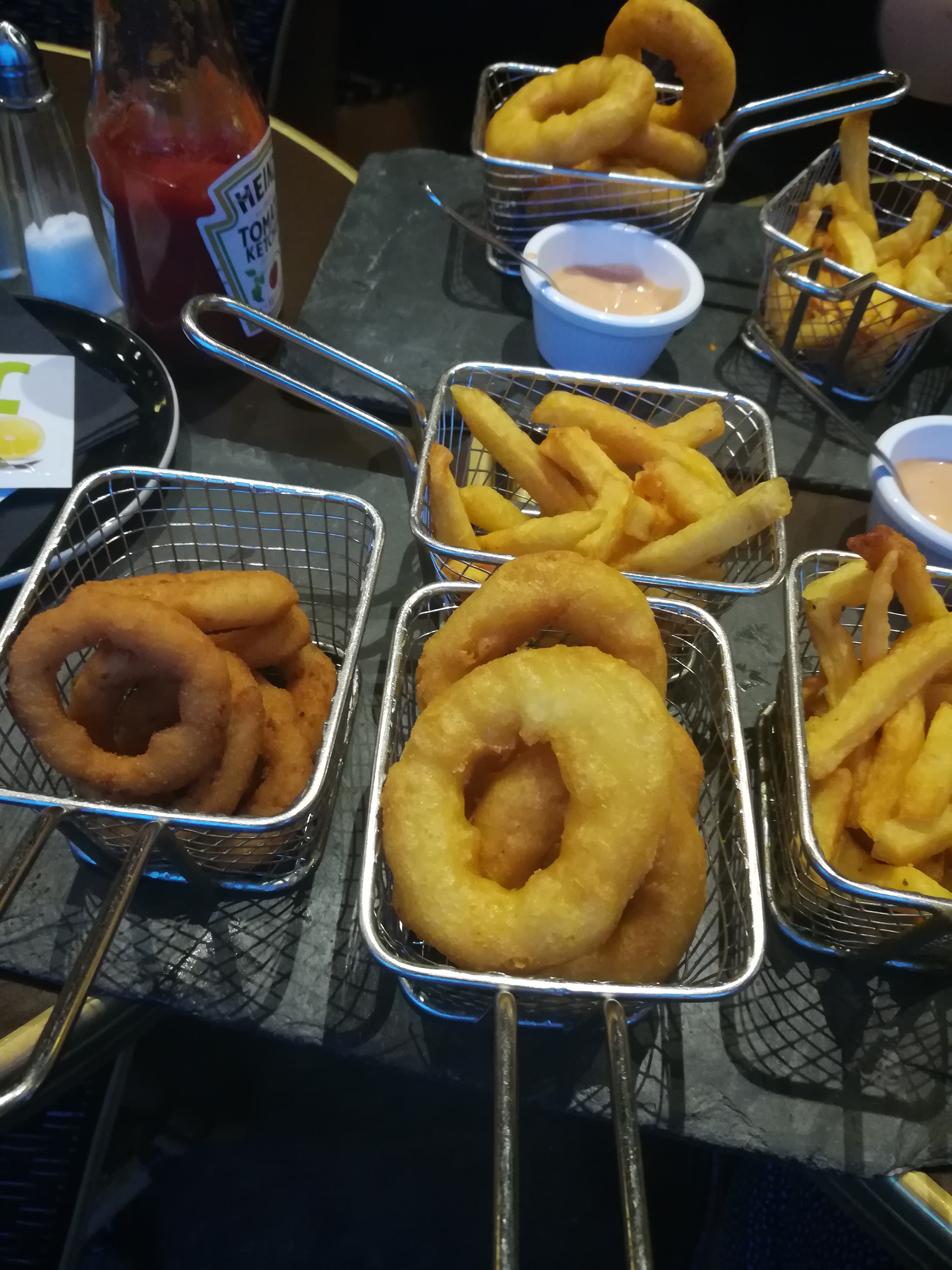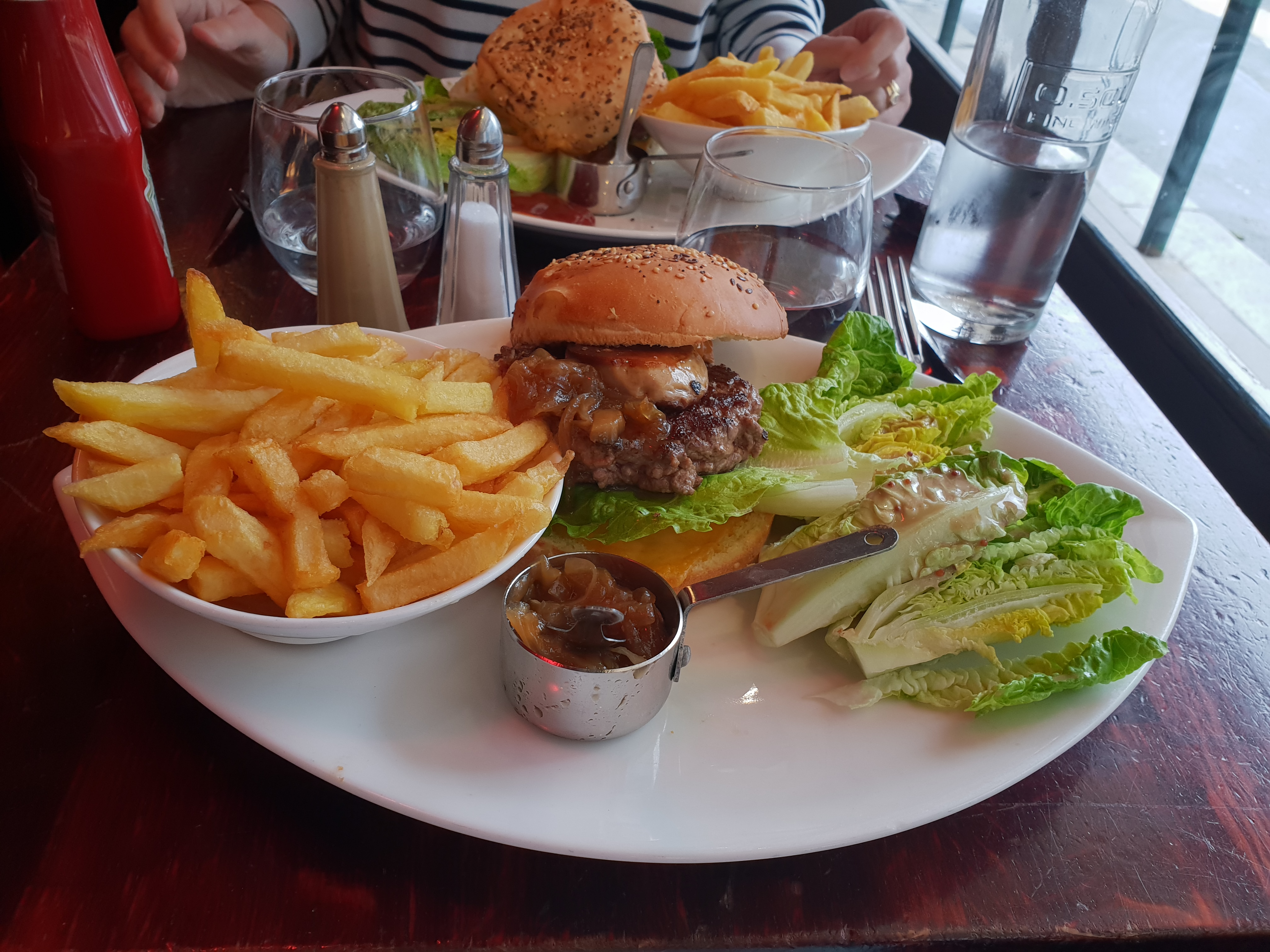 Plein rush, il a fallu batailler pour avoir l'entrée, puis le pain, puis le sel et le poivre puis le ketchup... Le patron aimable remonte un peu le niveau de la serveuse qu'on a l'impression d'embeter quand on lui demande quelque chose