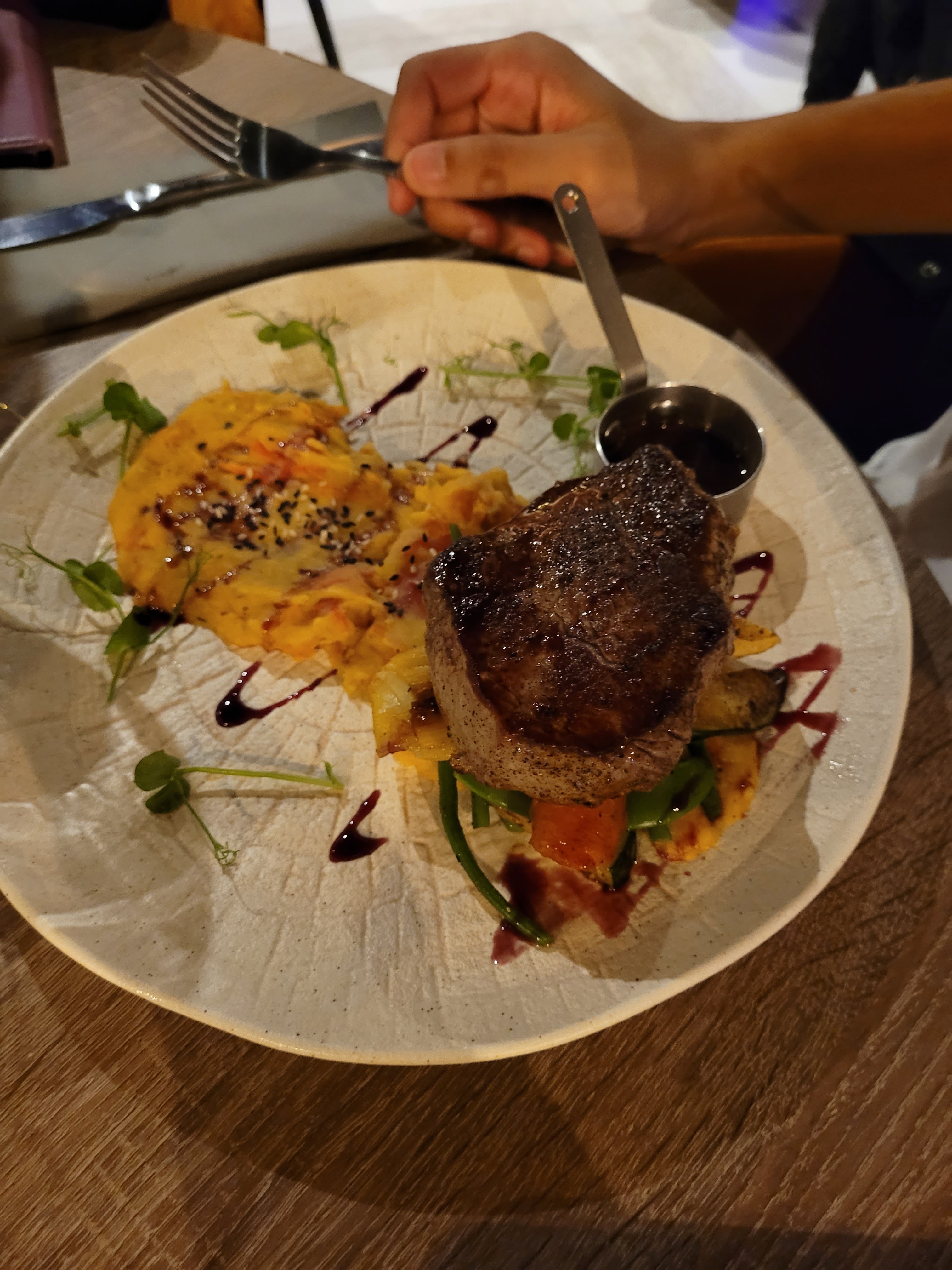 Decouverte de ce restaurant, très bien placé belle décoration, parking à proximité, accueil très agréable avec sourire, la carte est très bien qui donne du mal à choisir, un service de qualité, les plats sont copieux et surtout très soignés, à ne pas louper cette entrecôte exquise viande FRANÇAISE un grand Merci, bravo à toute l'équipe en salle et en cuisine, Bonne continuation. (nous irons à Verneuil tester votre autre établissement le Sol y Luna).