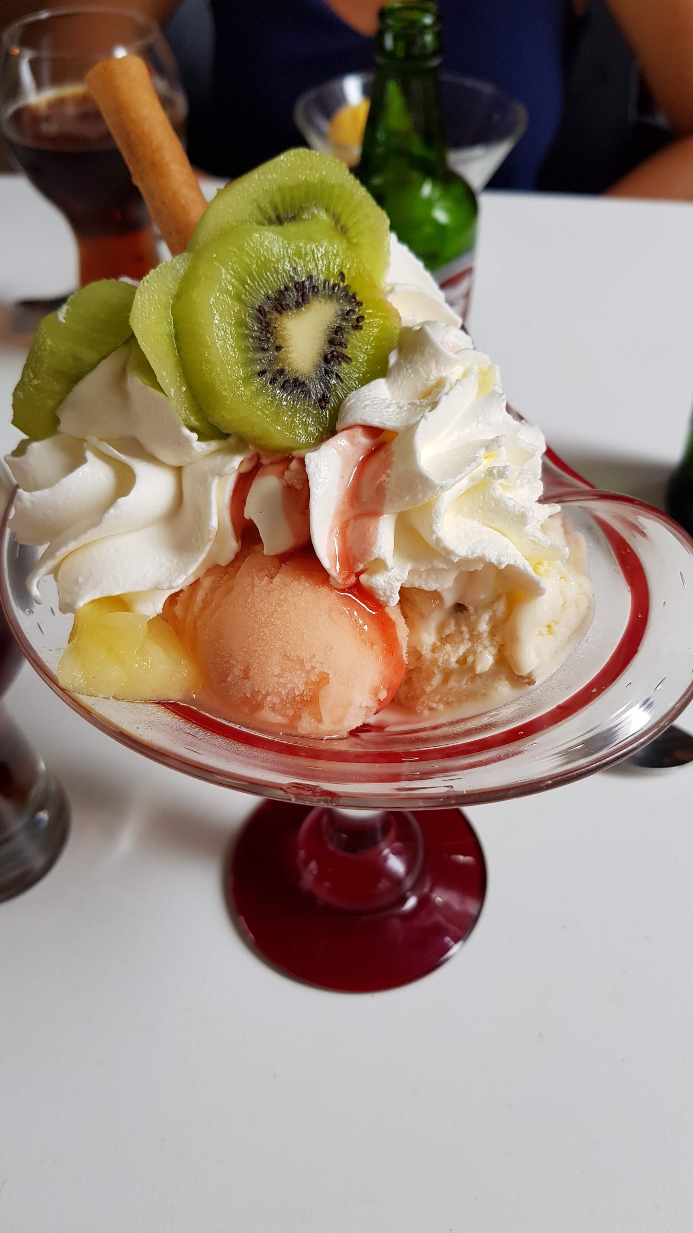 Repas acceptable, mais les glaces ne sont pas leur point fort... une coupe de demies boules... dommage....