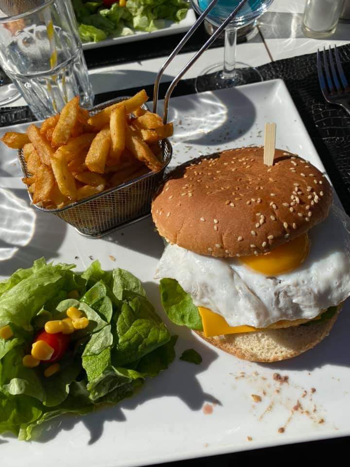 Bien installés en terrasse pour déguster de très bons magrets de canards et un magnifique burger pour notre petit Logan, une adresse à conserver..👍