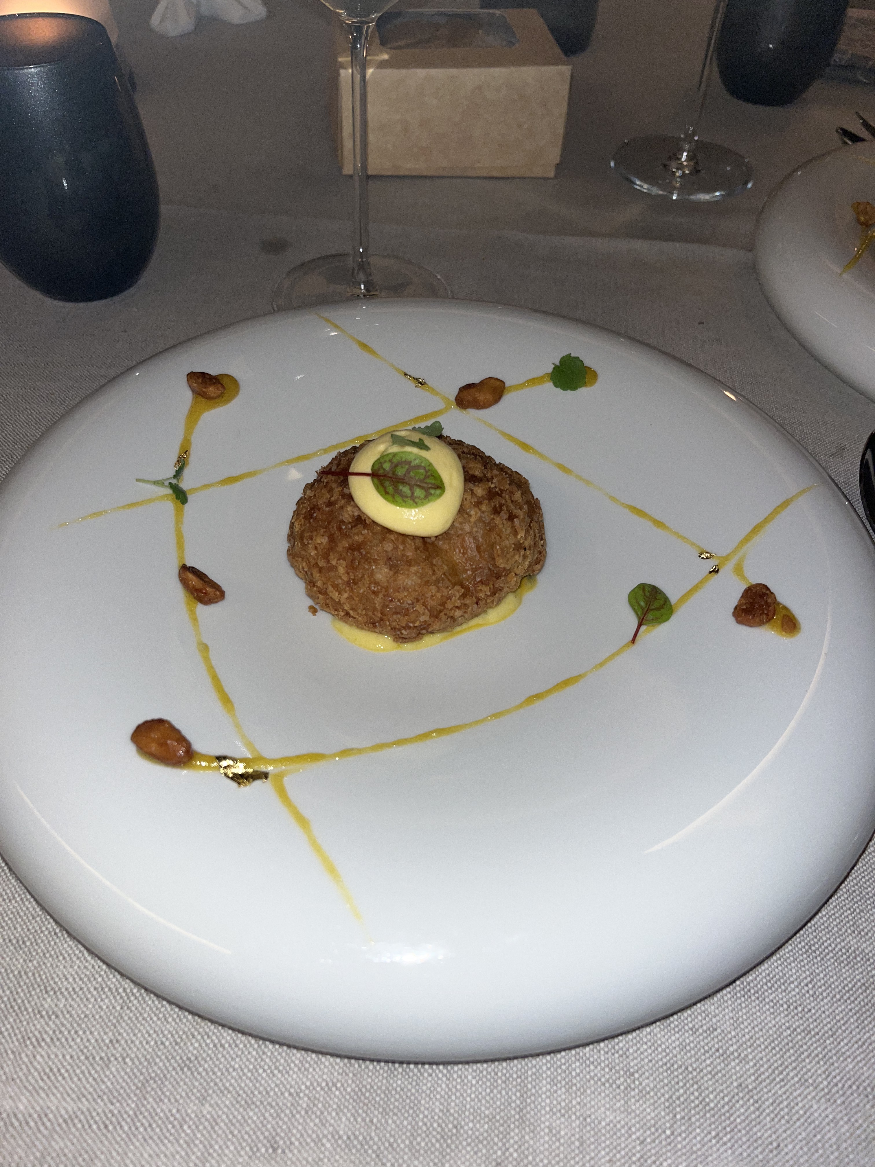 Personnel sympathique mais restaurant médiocre pour les végétariens. Nous avions précisé à l'avance que nous souhaitions manger végétarien (que cela est encore nécessaire à cette période, donc rien sans viande ni poisson au menu). J'ai reçu une tarte aux légumes à l'avance, elle était magnifique, elle n'avait aucun goût. Plat principal honteusement mauvais, quelques morceaux de poireaux avec un total de 2 champignons châtaignes émincés. Très en dessous de la moyenne et pour tellement d'argent ! Le dessert beau mais pas vraiment sensationnel. Au total, ce chef étoilé français a encore beaucoup à apprendre et se rend compte que les végétariens aussi veulent manger haut de gamme !