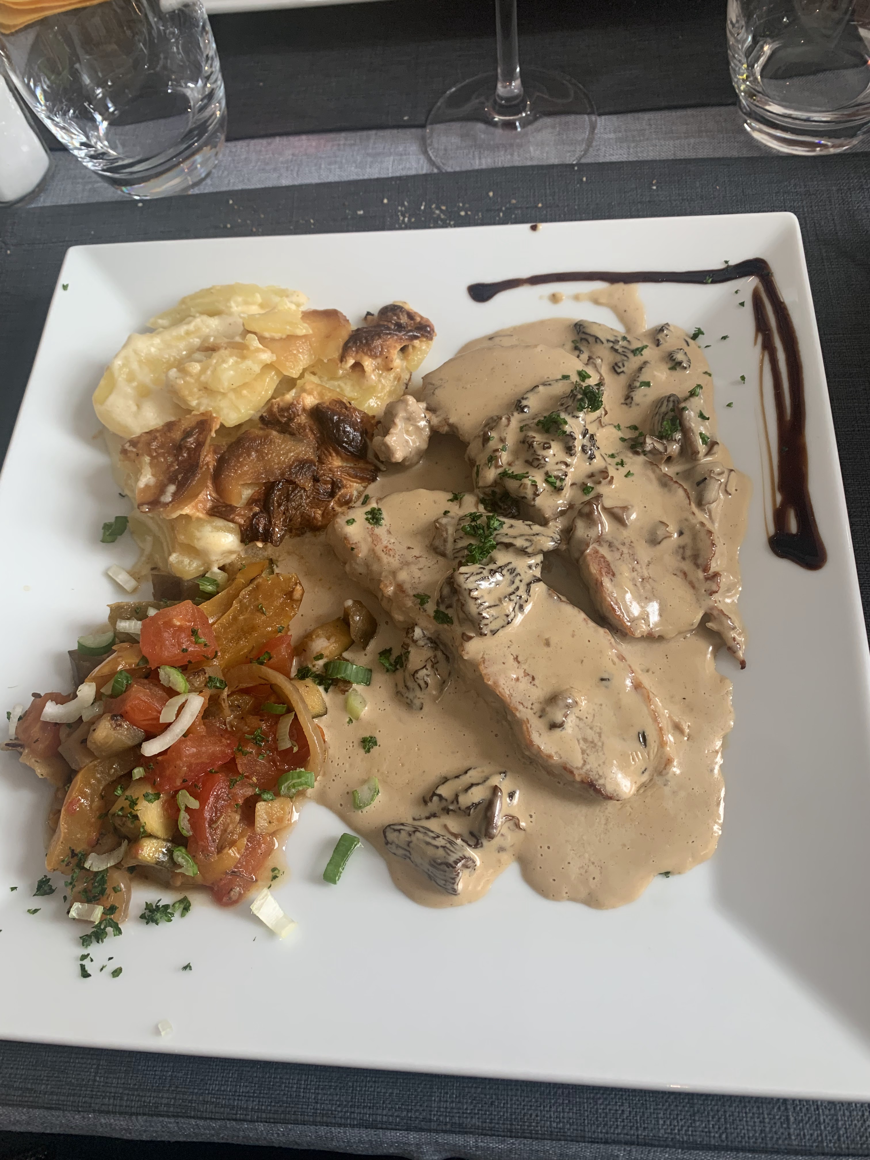 Une très bonne adresse où l'accueil et le service sont très aimables. Les plats sont succulents, je n'ai pas pensé à faire de photos, mais vous ne serez absolument pas déçu. Les quantités sont suffisantes, les produits de très bonne qualité, la cuisson impeccable et le dressage est soigné. Je vous conseille le sanglier accompagné du gratin dauphinois, un régal. La tarte tatin agrémentée de fruits et de crème fraîche était incroyable. Bon appétit.