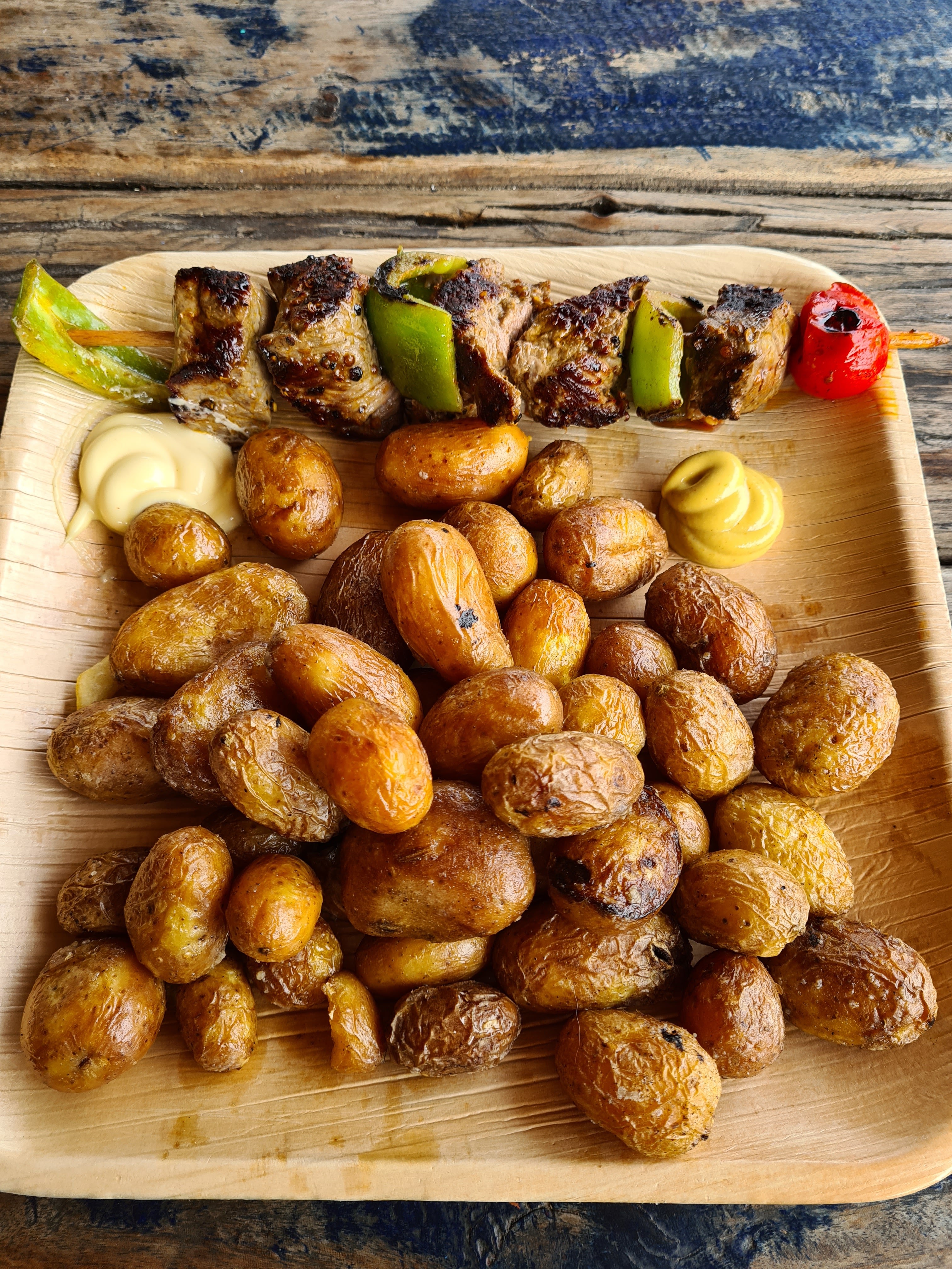 Brochette de poulet qui est restée au four trop longtemps vraiment trop sec la viande était même étouffante et que dire des frites surgelées digne des fast food mais avec un plat 2 fois plus cher… Bref encore une bonne arnaque pour ce prix là …