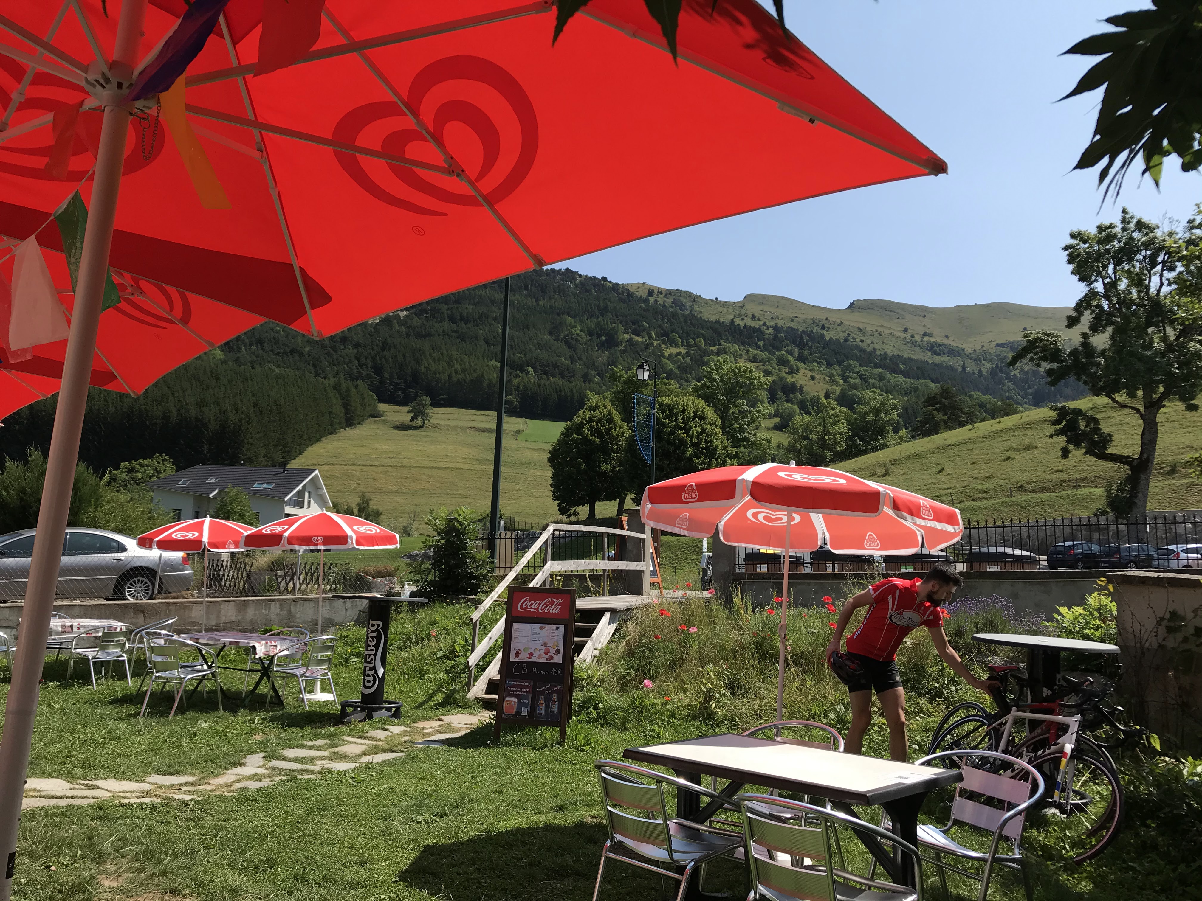 Petit arrêt en terrasse pour boire un coup lors d'une sortie moto : bien sympa, vue agréable, et soleil. L'ambiance est familiale et sympa.