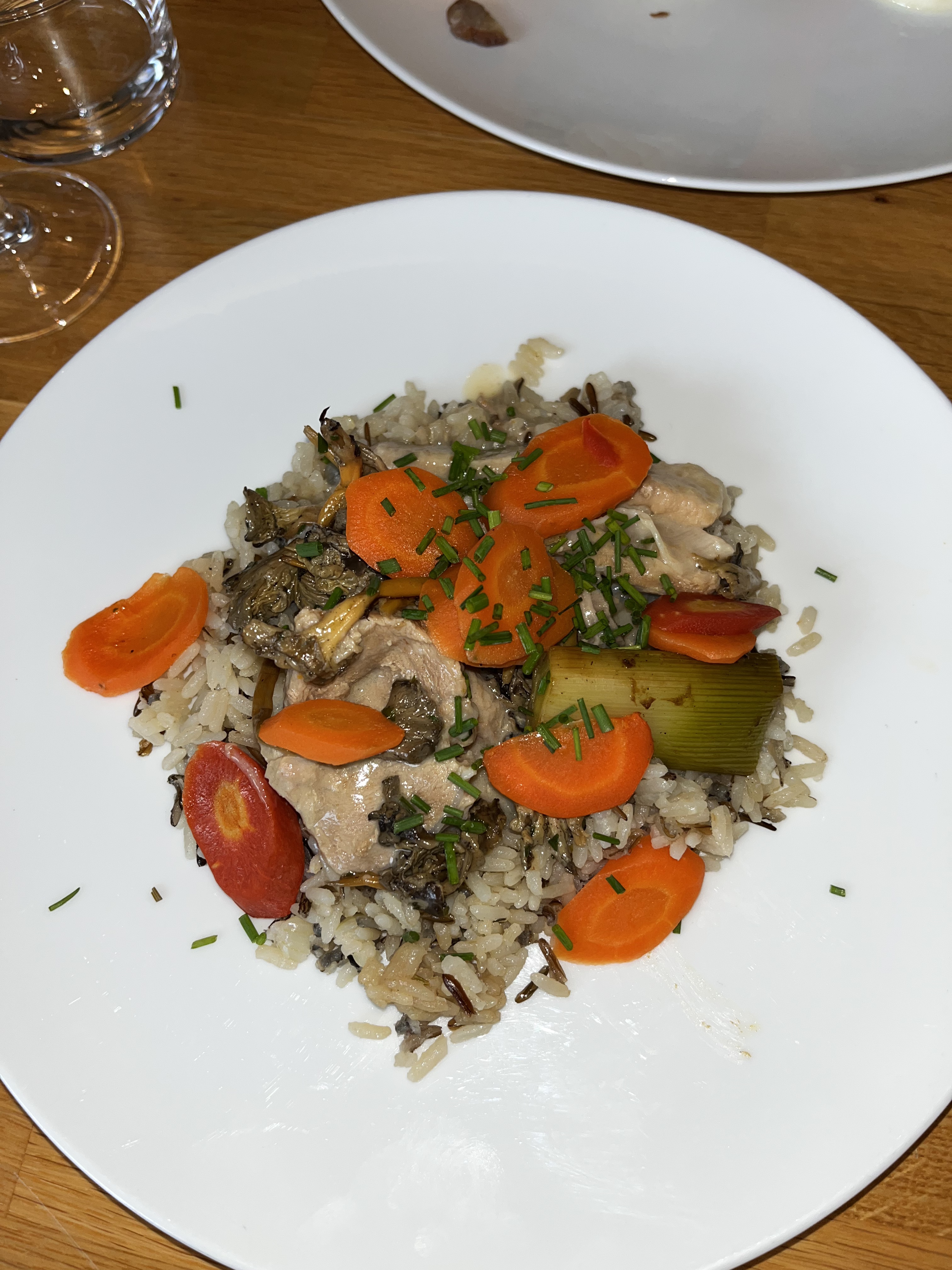 Super moment dans le coin des baies vitrées, l'eau éclairée donnait une belle ambiance. Les plats de veau ont été juste délicieux ! On a été très bien accueilli par tous : stagiaire et spécialistes du serpolet 😉 les deux tiges ont été dévorées par notre lapine. Nous reviendrons pour le tout !