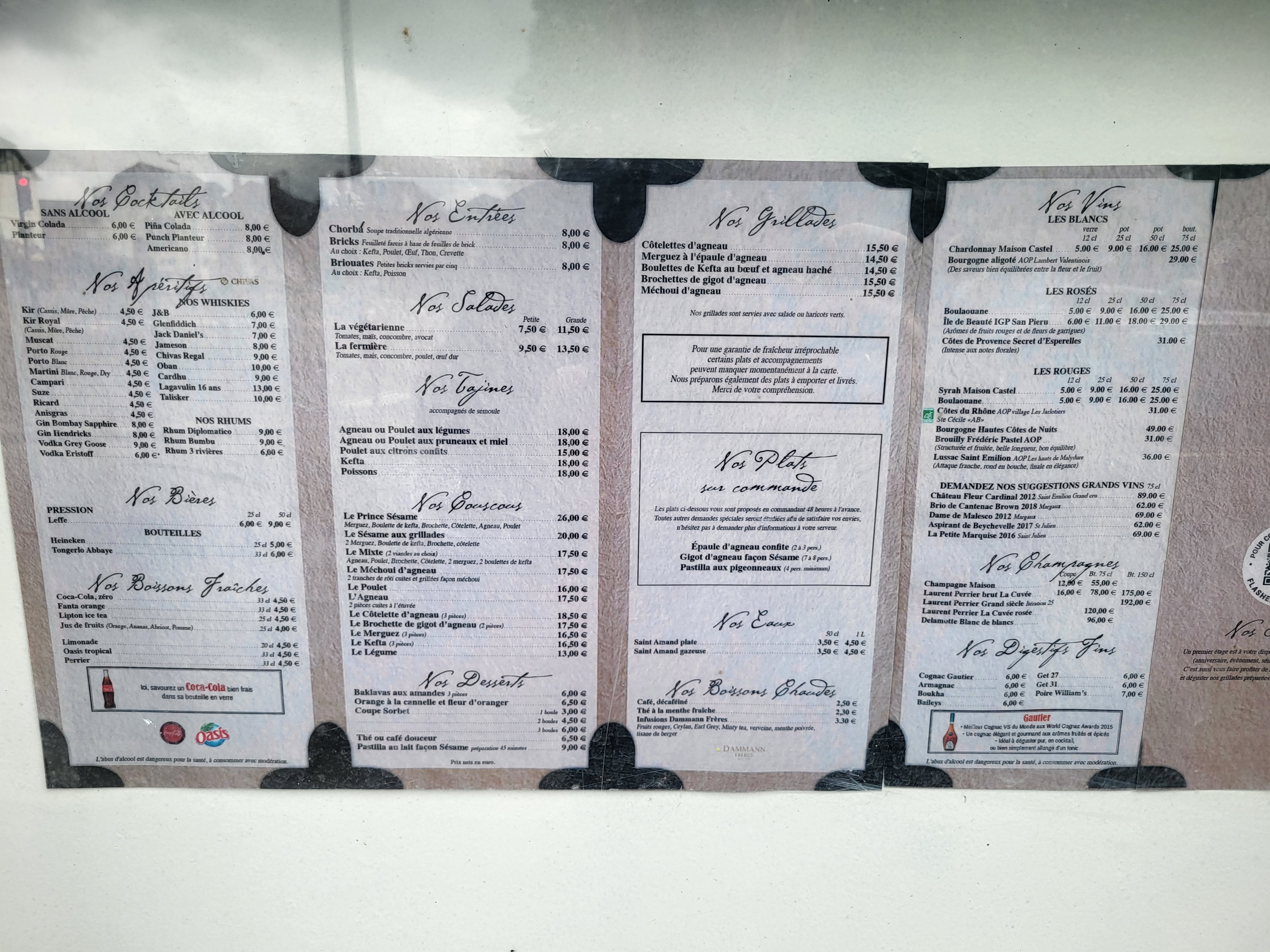 Très bon coucous et tajine vraiment bien, copieux, mais pensez à demander les prix du vin si vous n'avez pas la carte des vins en main car à 24€ la bouteille de Boulaouane.........belle culbute..........