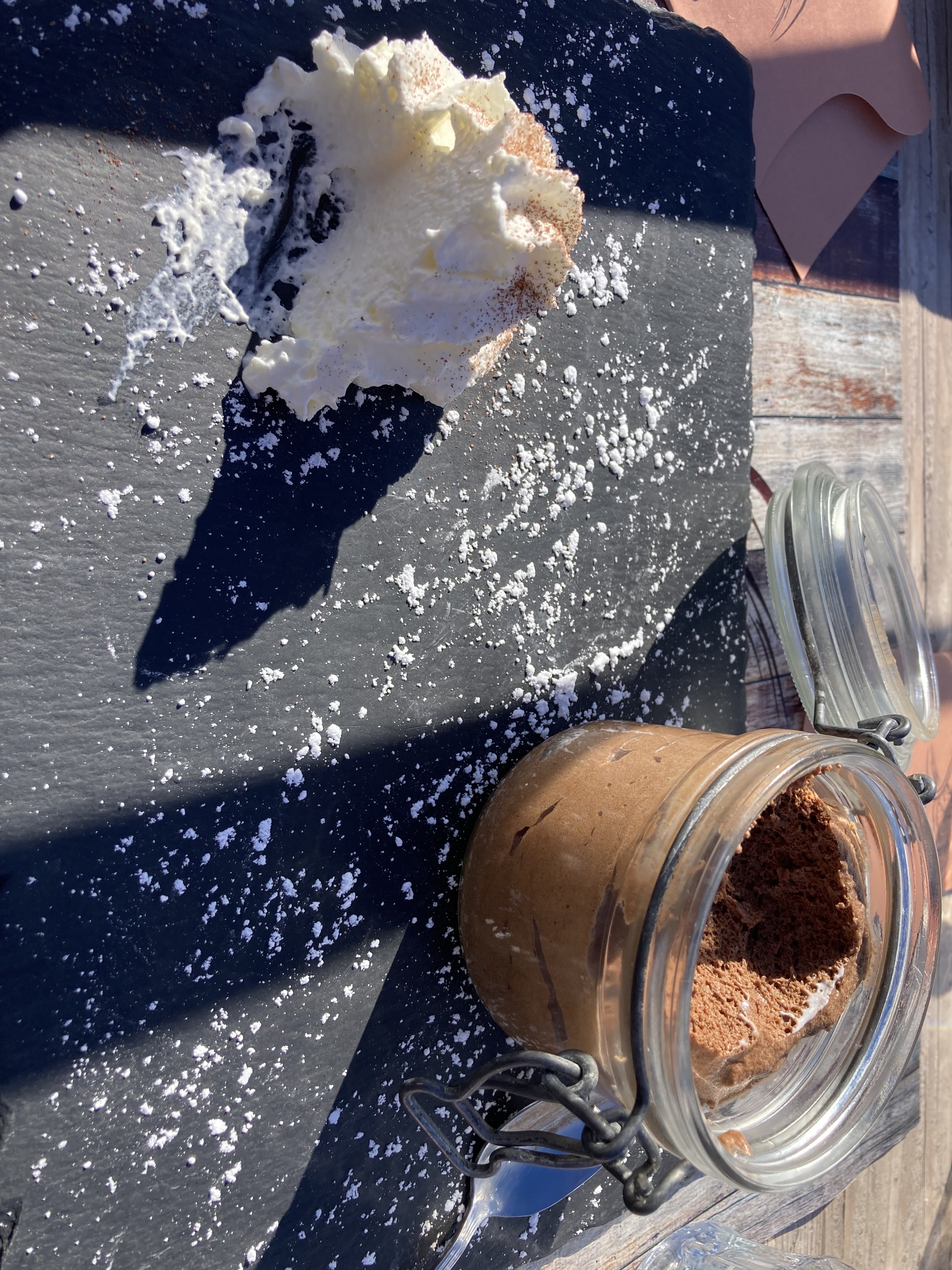 Deux déjeuners dont un sur la terrasse ensoleillée et l’autre à l’intérieur bien au chaud dans une belle ambiance savoyarde. Un très bon moment et une carte variée.