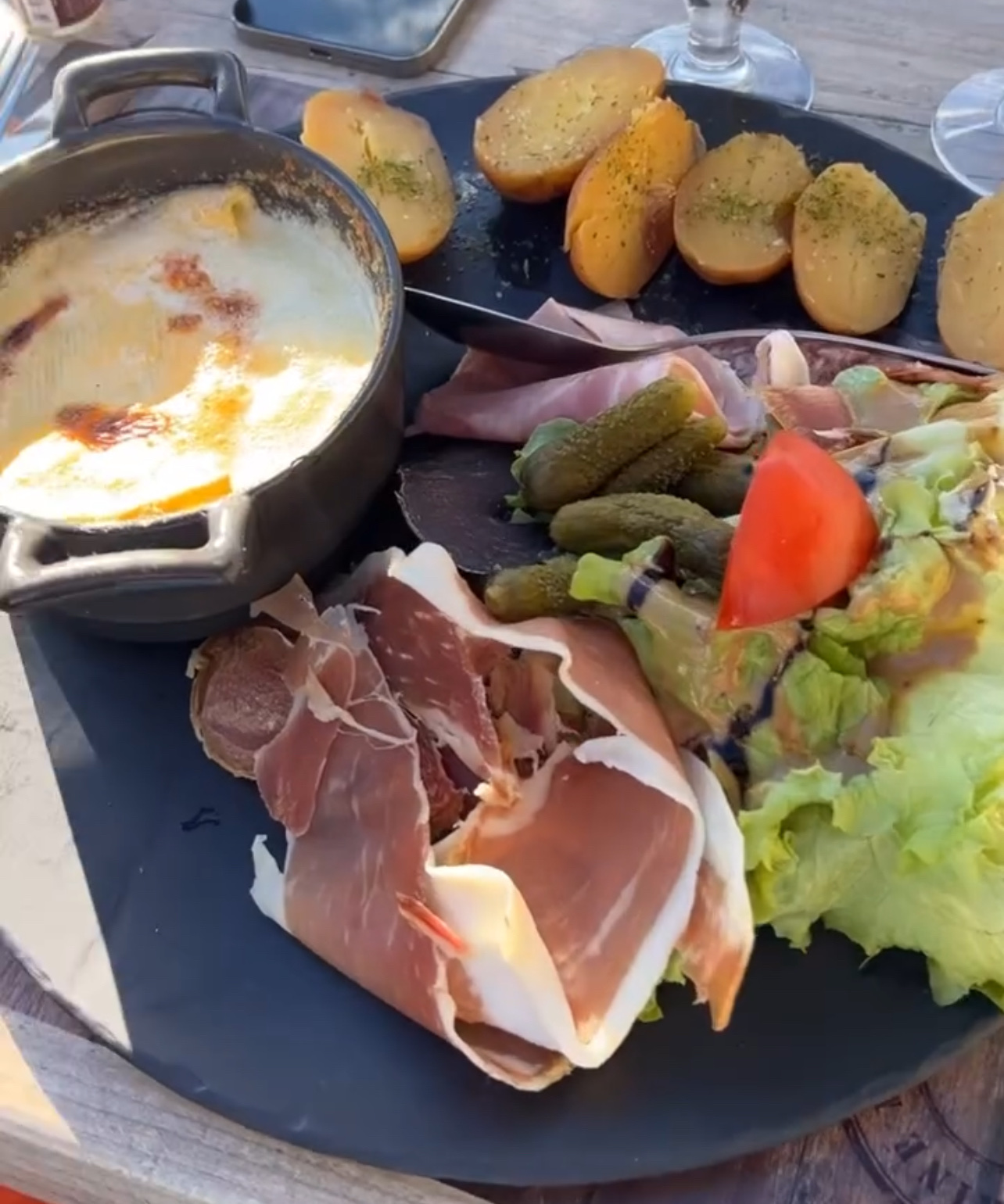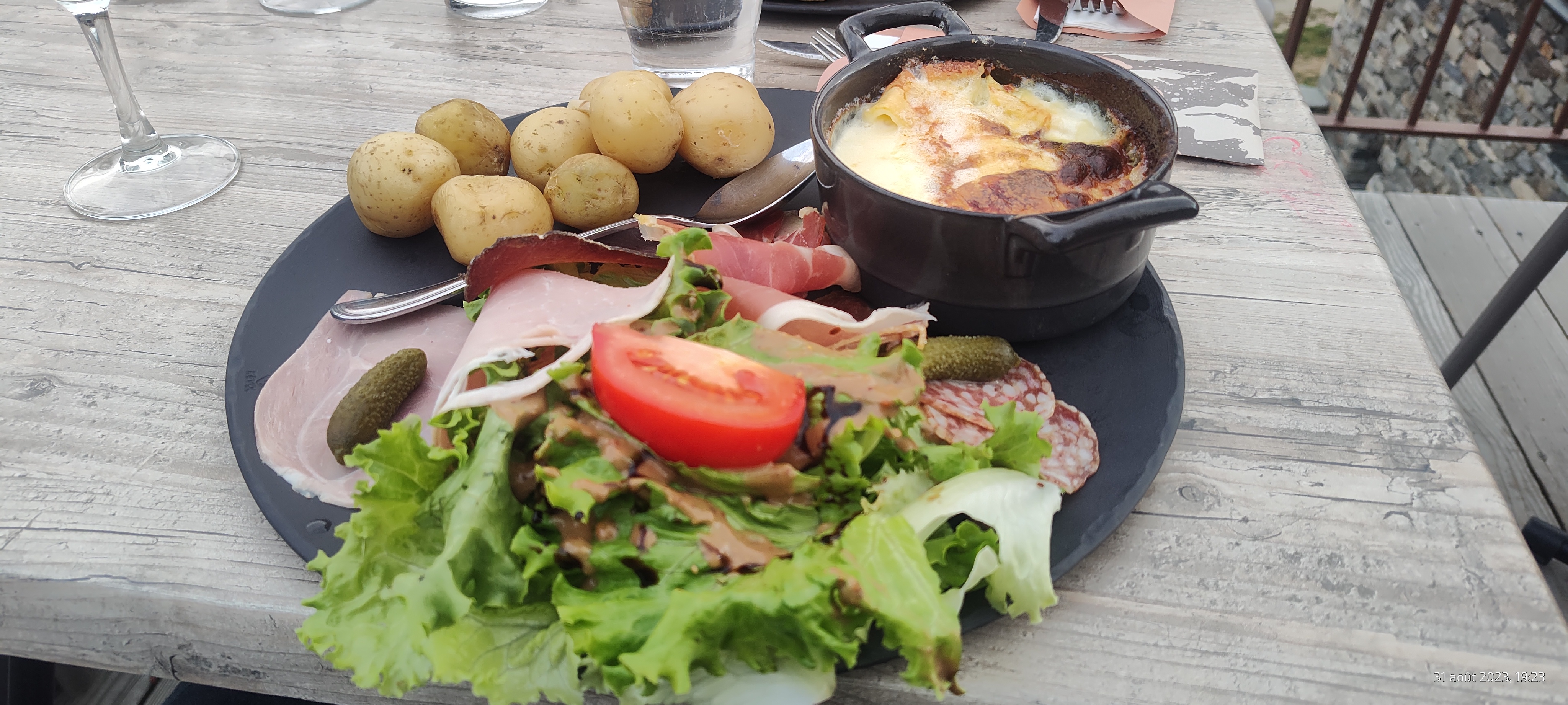 Cadre magnifique , belle terrasse vue superbe , une serveuse ( betty je crois) efficace , dynamique, souriante. Par contre cuisine sans grand interet , un peu cher pour la qualité , en particulier la charcuterie trés trés bas de gamme pour la reblochonnade . Mais bon moment malgré tout