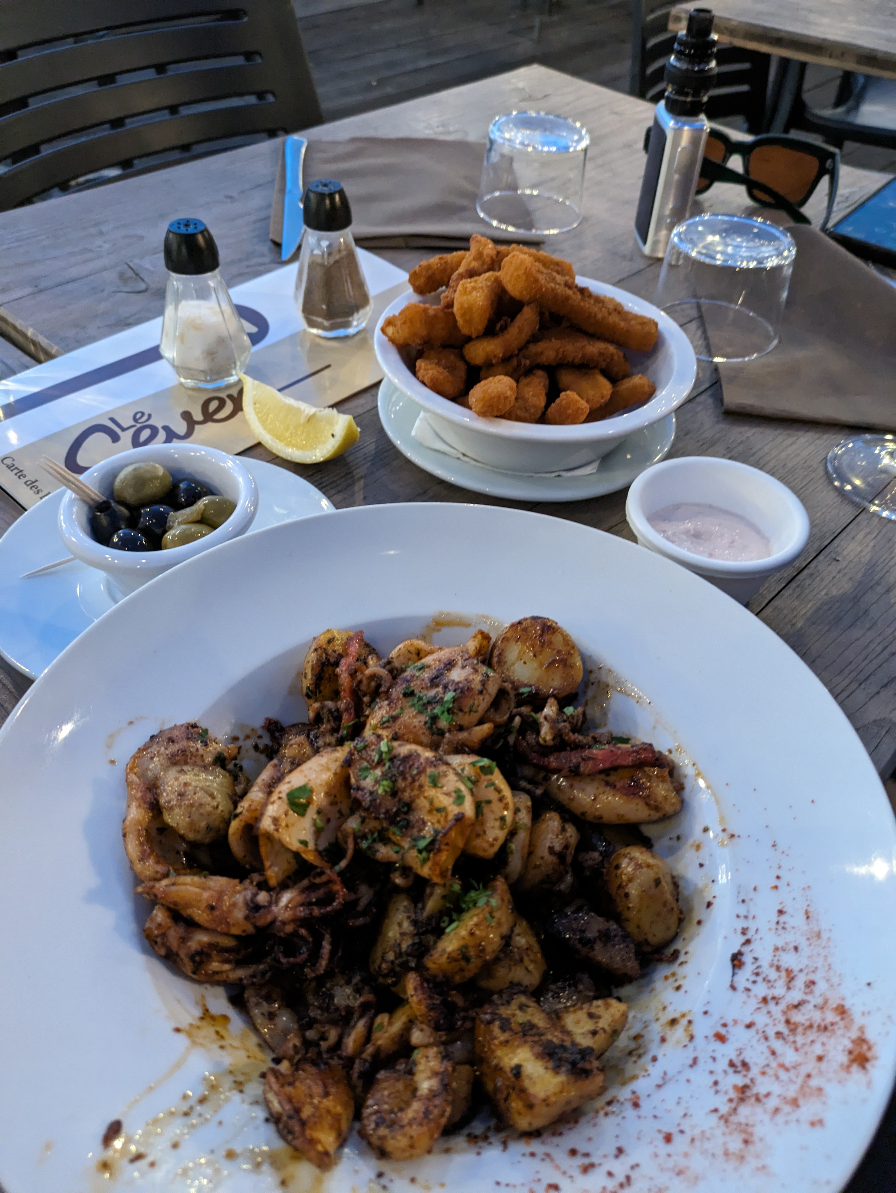 Moment tapas en terrasse le soir ( fermé le midi par manque de personnel, dommage) on profite du bruit de l'océan, le personnel est sympa, le service rapide. Un endroit que je recommande vivement pour vrai moment détente