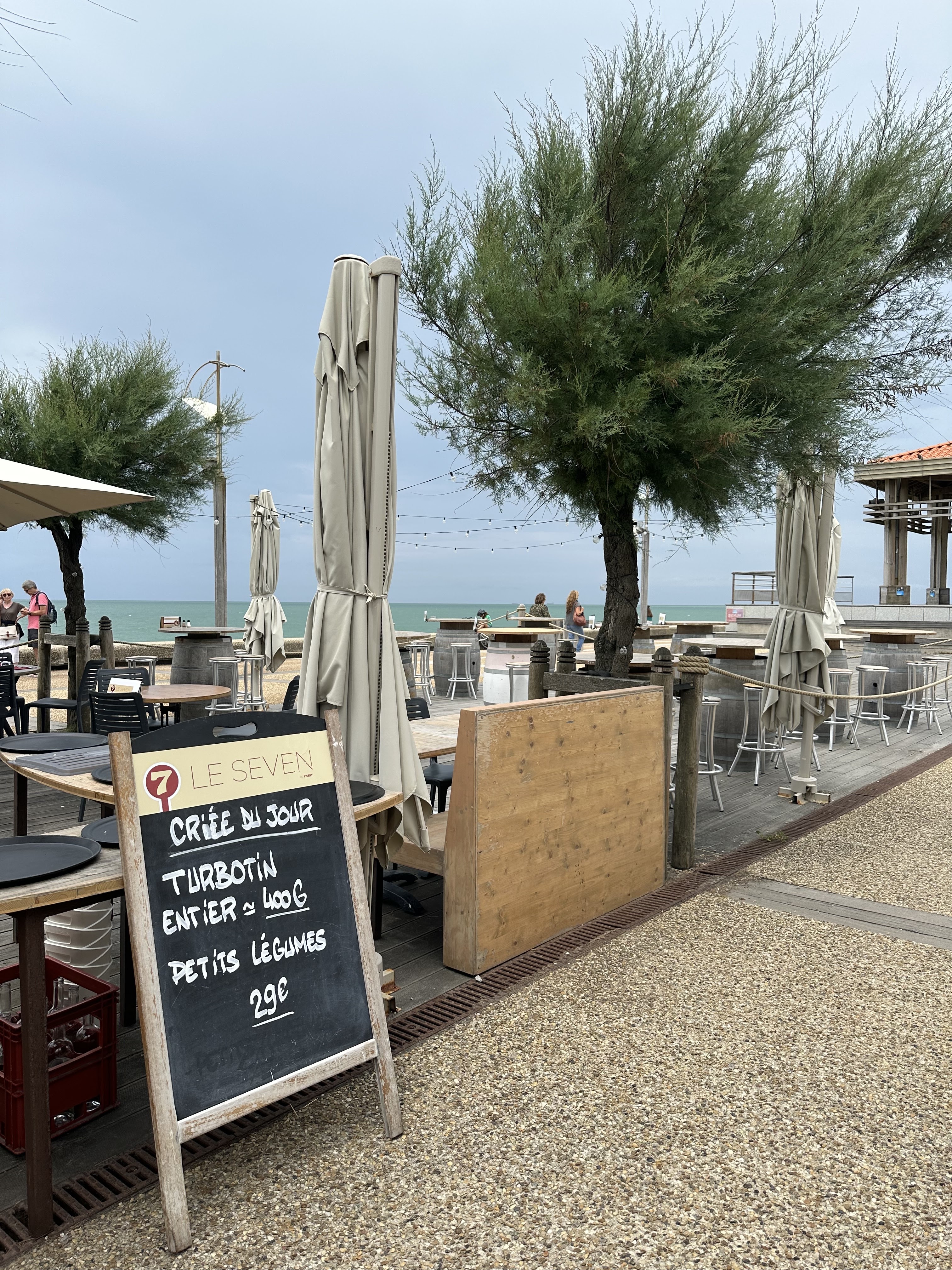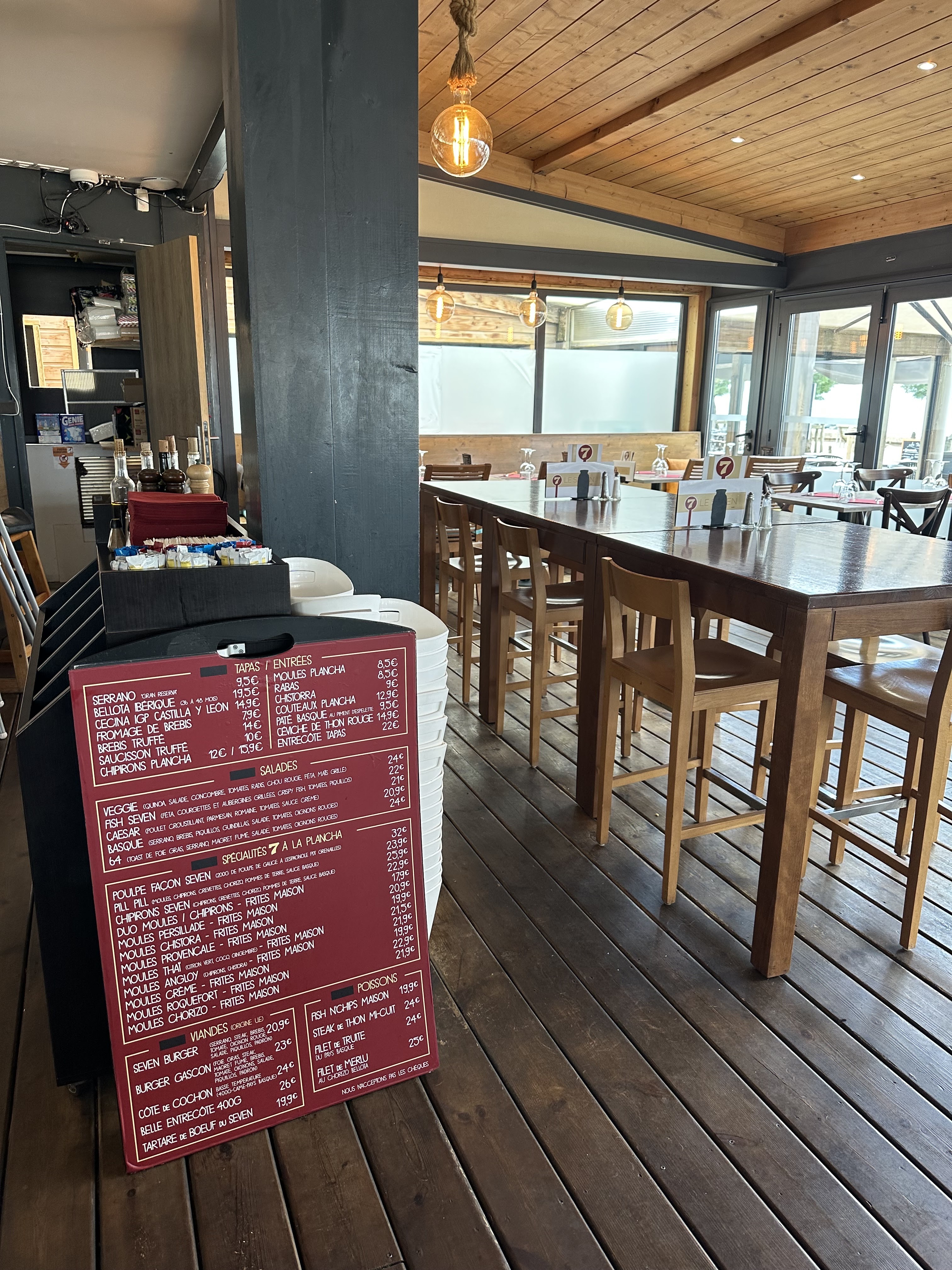 Sous les conseils d'un ami, je suis allée au Seven pour y goûter la spécialité basque : les chipirons sauce basque. Un délice ! J'en aurais bien pris une 2e assiette pour être honnête :) Ce restaurant offre une jolie vue sur la mer, il est bordé par le marché nocturne l'été.