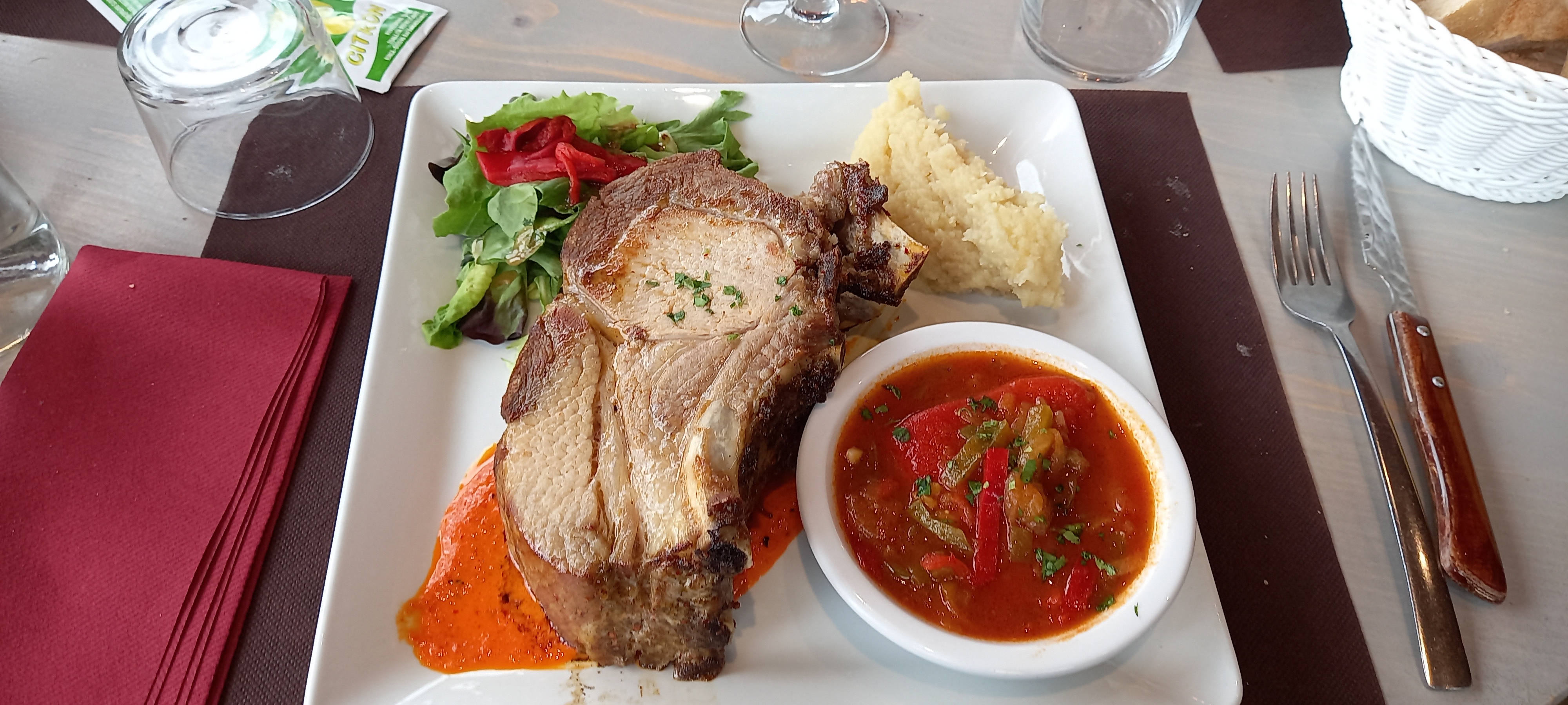 Accueil très sympa et souriant , terrasse au bord de l'eau.... La côte de porc élevé en plein air est juste géniale....😋😋👍👍 Ne pas hésiter à s'y poser....