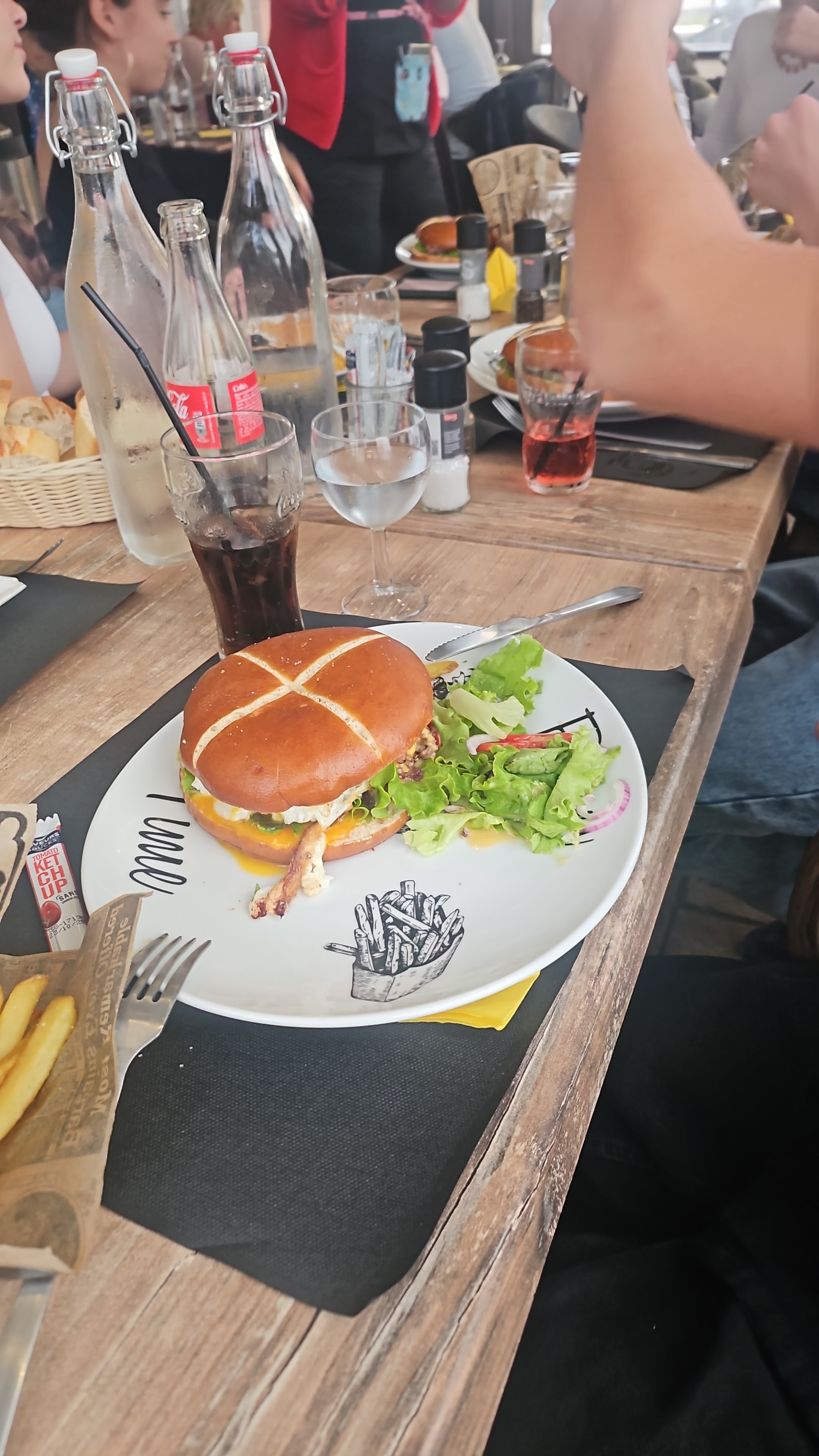 Grande attablé, le service a été très rapide. Cependant, la qualité des produits reste à voir … Nous avons demandé d’enlever l’œuf sur le burger, le serveur n’a pas voulu. Pour couronner le tout, il n’y avais plus de dessert alors qu’on nous le propose, pas top … Je ne conseille pas ce restaurant.