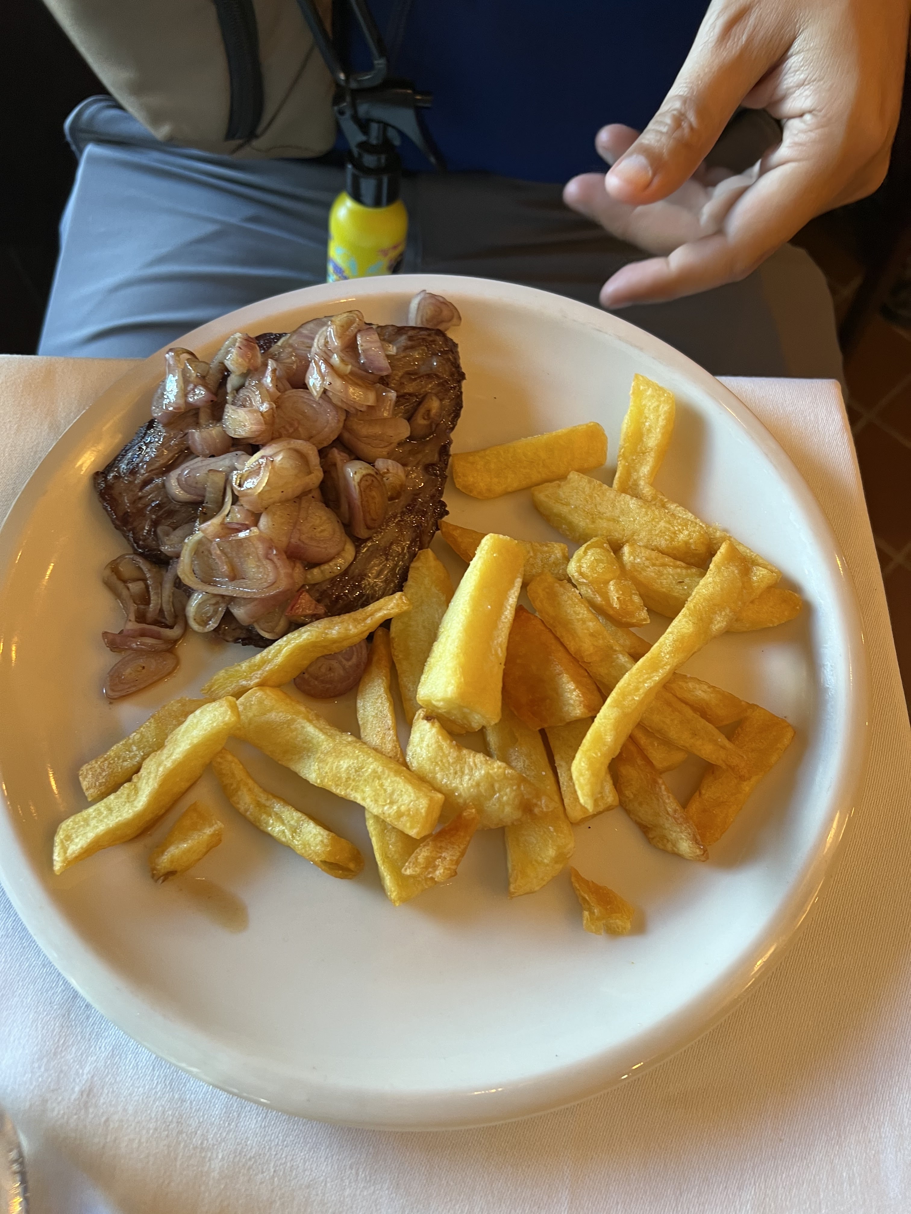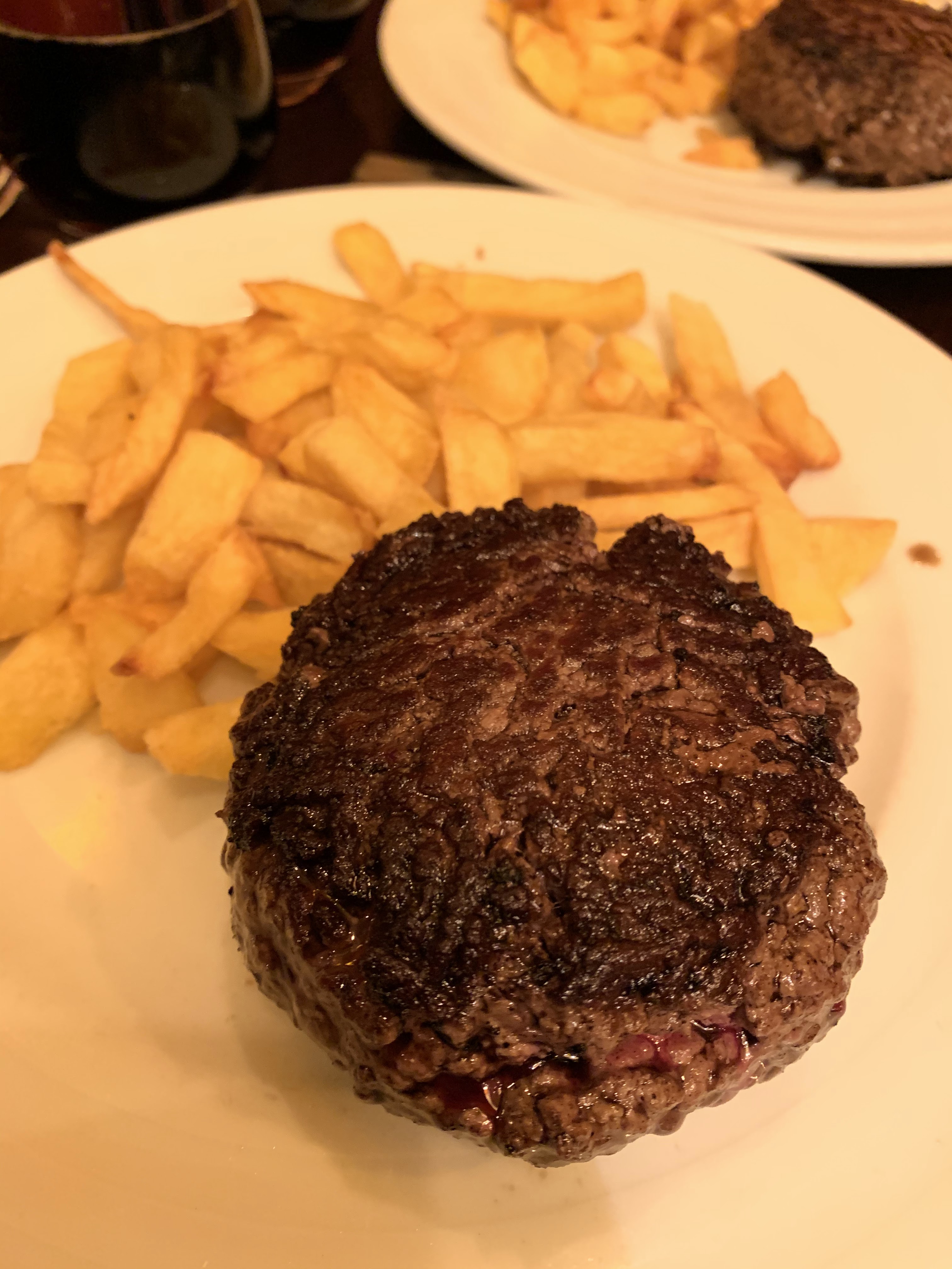 Le steak parfait. A été accueilli par le propriétaire du restaurant, il parle un peu anglais. Poli et accueillant. Restaurant un peu petit mais ça va. Rumsteak commandé qui coûte 26 €, vaut chaque centime. Servi avec un steak juteux mi-saignant avec des frites, les frites étaient bonnes, le steak était incroyable. J'ai beaucoup apprécié mon steak👍🏿