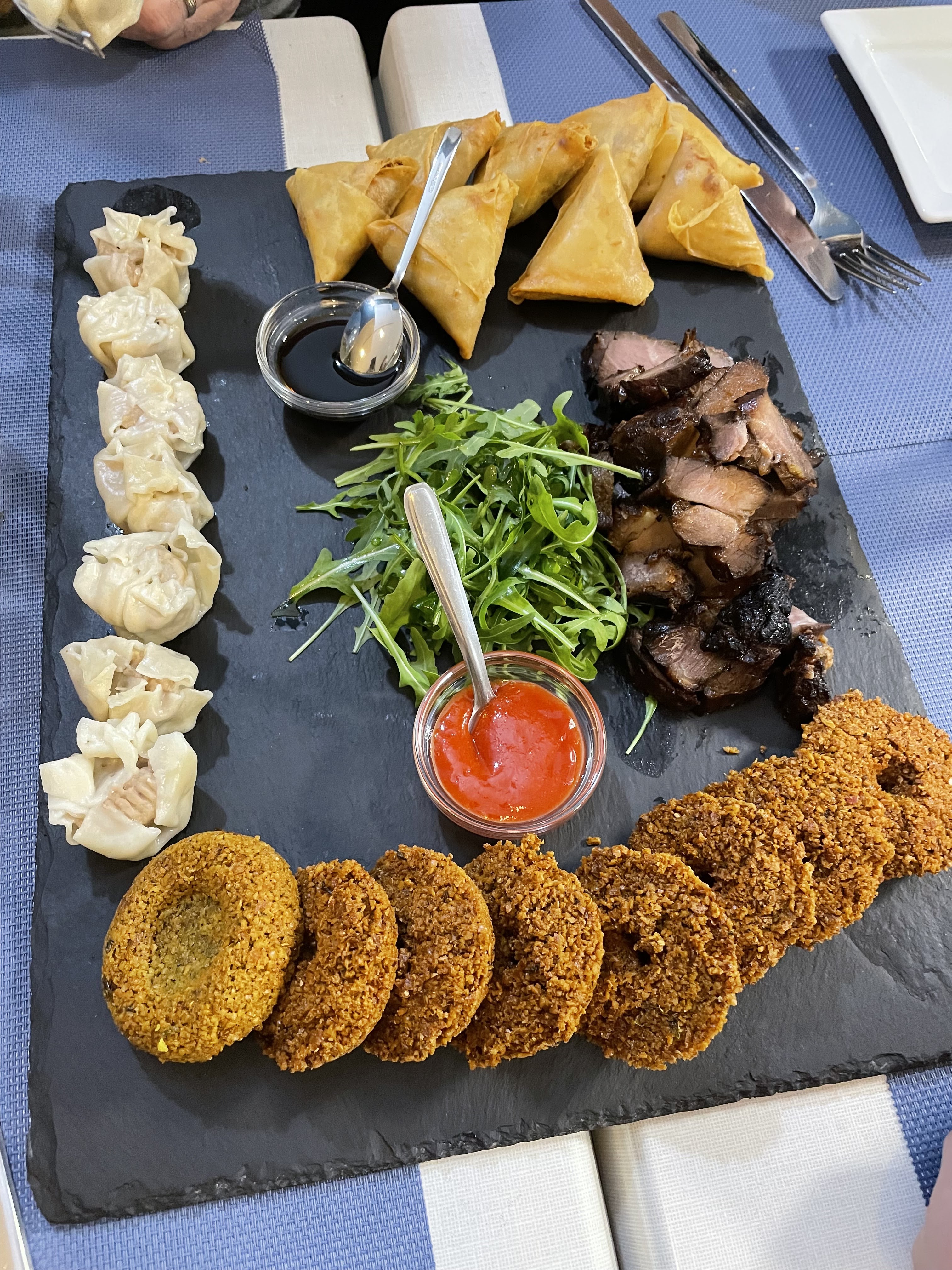Nourriture excellente surtout les entrées et bonnes quantités. Un point de moins pour le service. J'ai dû leur demander s'ils avaient des bonbons et aussi prendre un café. Le paiement avec cc ne fonctionnait pas, ils n'en parlaient pas à l'arrivée de certains clients qui devaient aller chercher un distributeur automatique après le dîner. Un point en moins également pour l'environnement, trop lumineux et peu caractéristique.