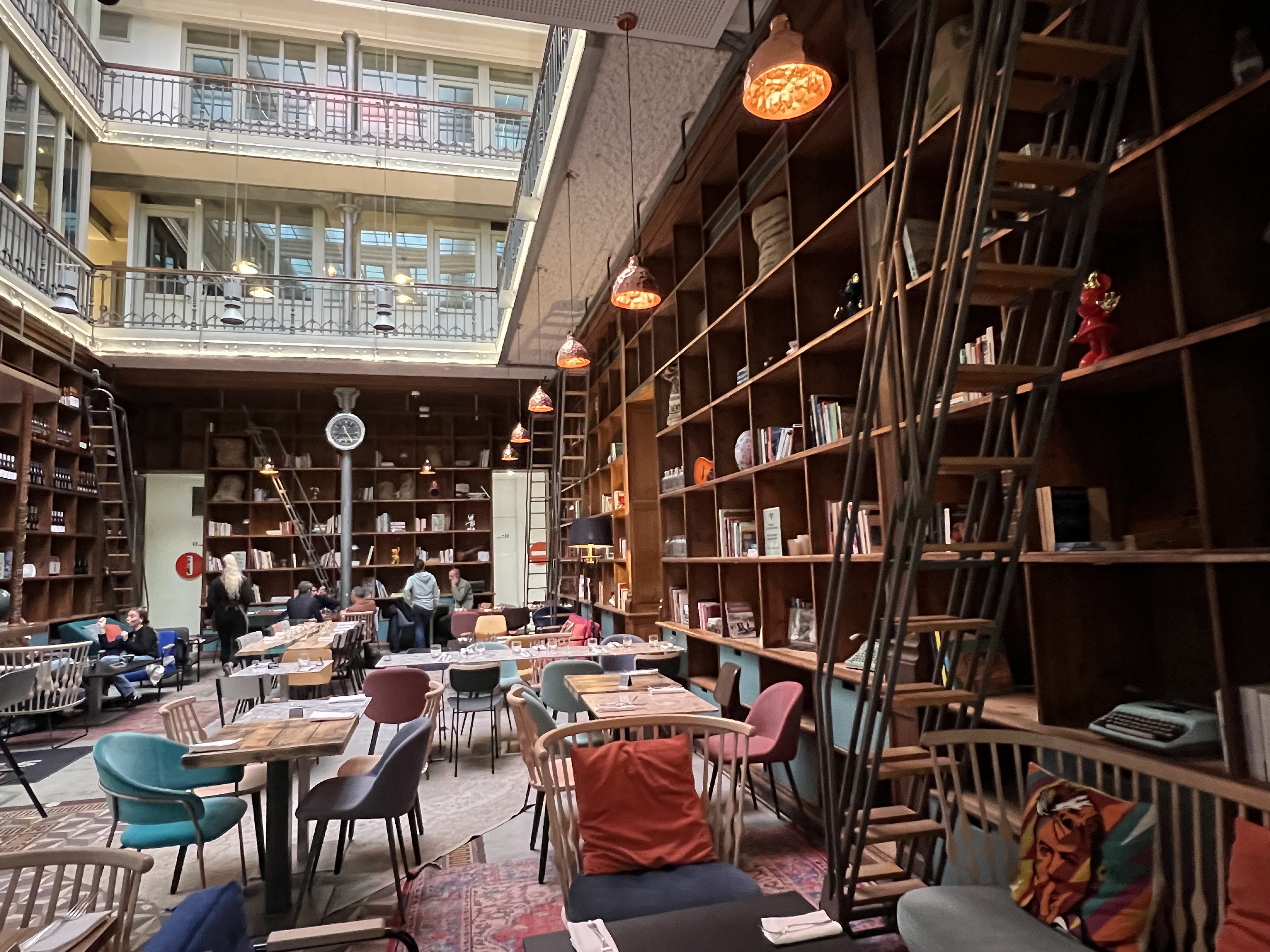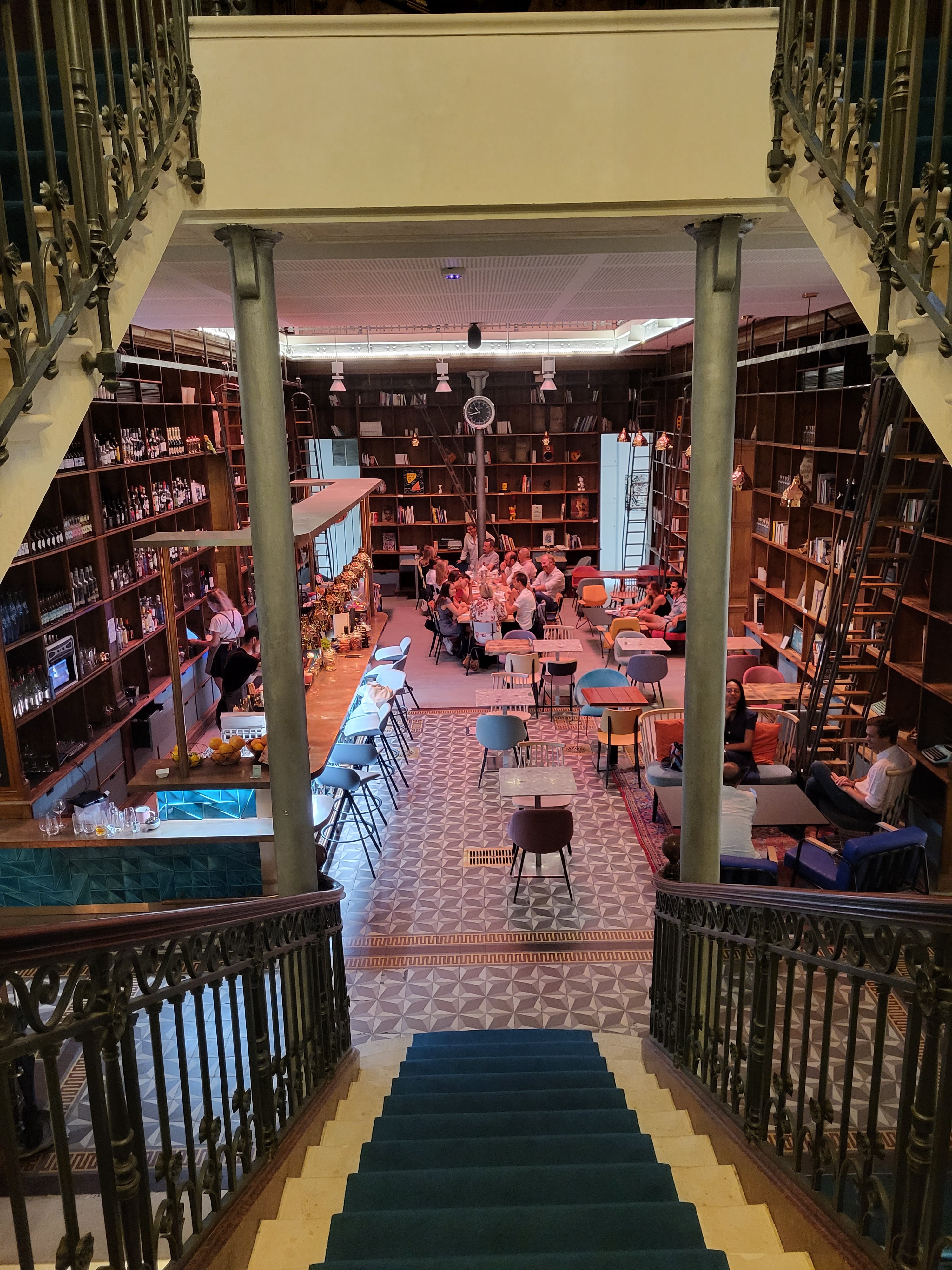 Le lieu est très beau, on est étonné de se retrouver dans une grande bibliothèque avec un bar et des tables pour se retrouver boire un verre. Dommage que la carte soit Light au niveau des choix si l on veut grignoter qq chose en buvant un verre.