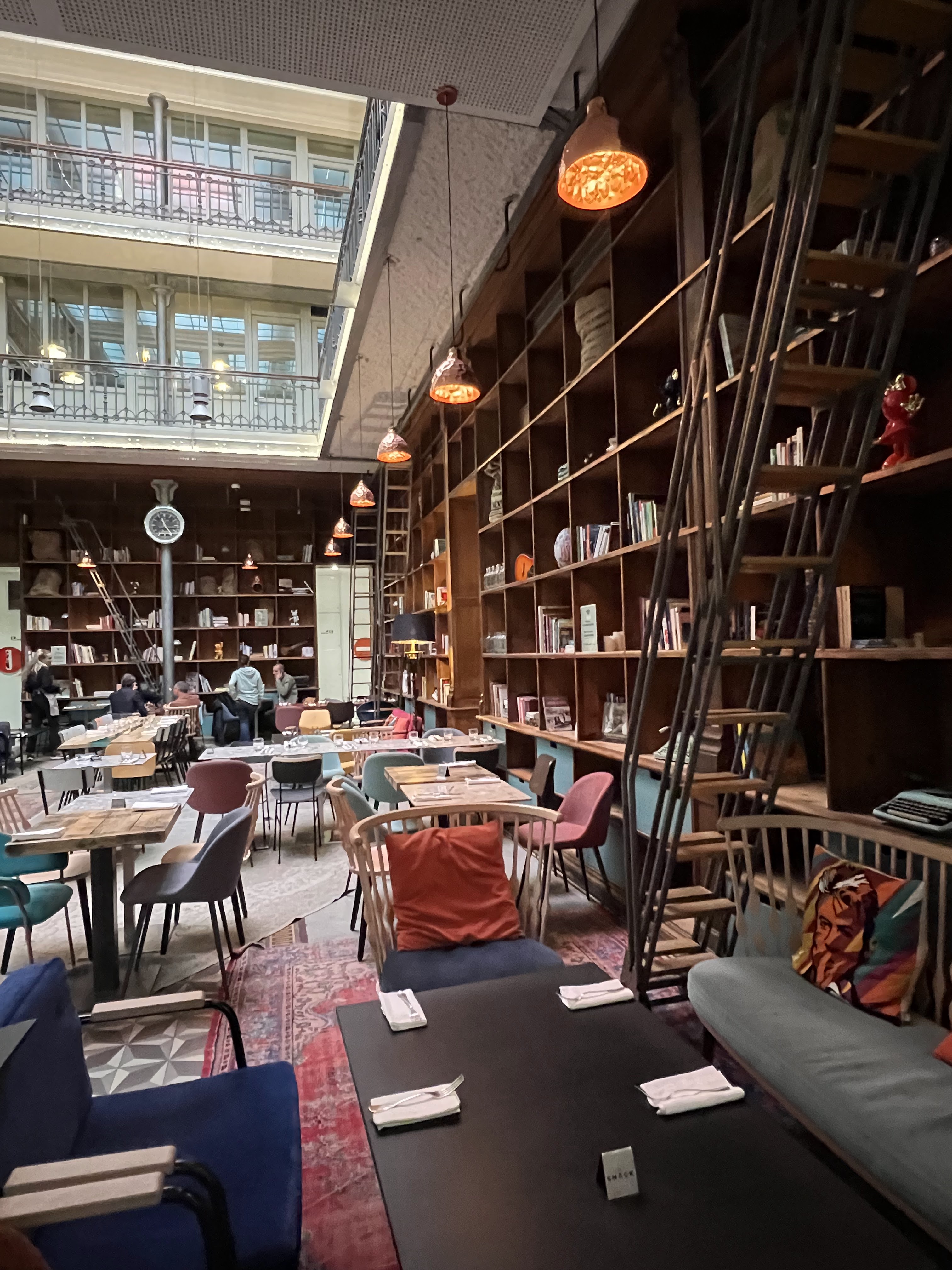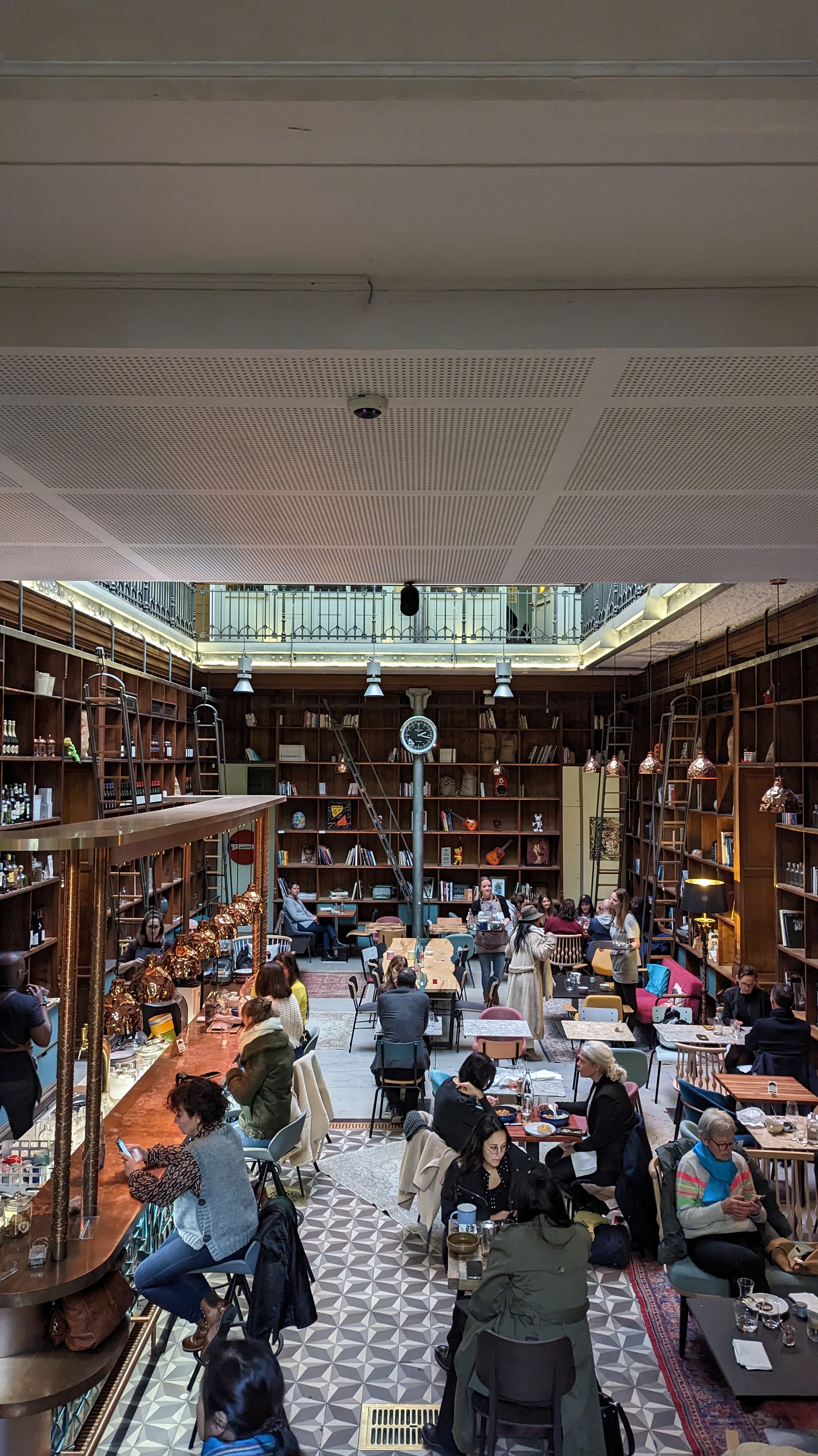 Le lieu est magnifique, caché au fond d'une impasse, j'y viens depuis l'ouverture en 2020 et je ne me lasse pas de l'ambiance, d'immenses bibliothèques en bois avec leurs échelles, un bar splendide, je découvre à chaque passage de nouveaux détails de la décoration. Mieux vaut réserver pour le déjeuner. Service agréable et les plats sont très bons.