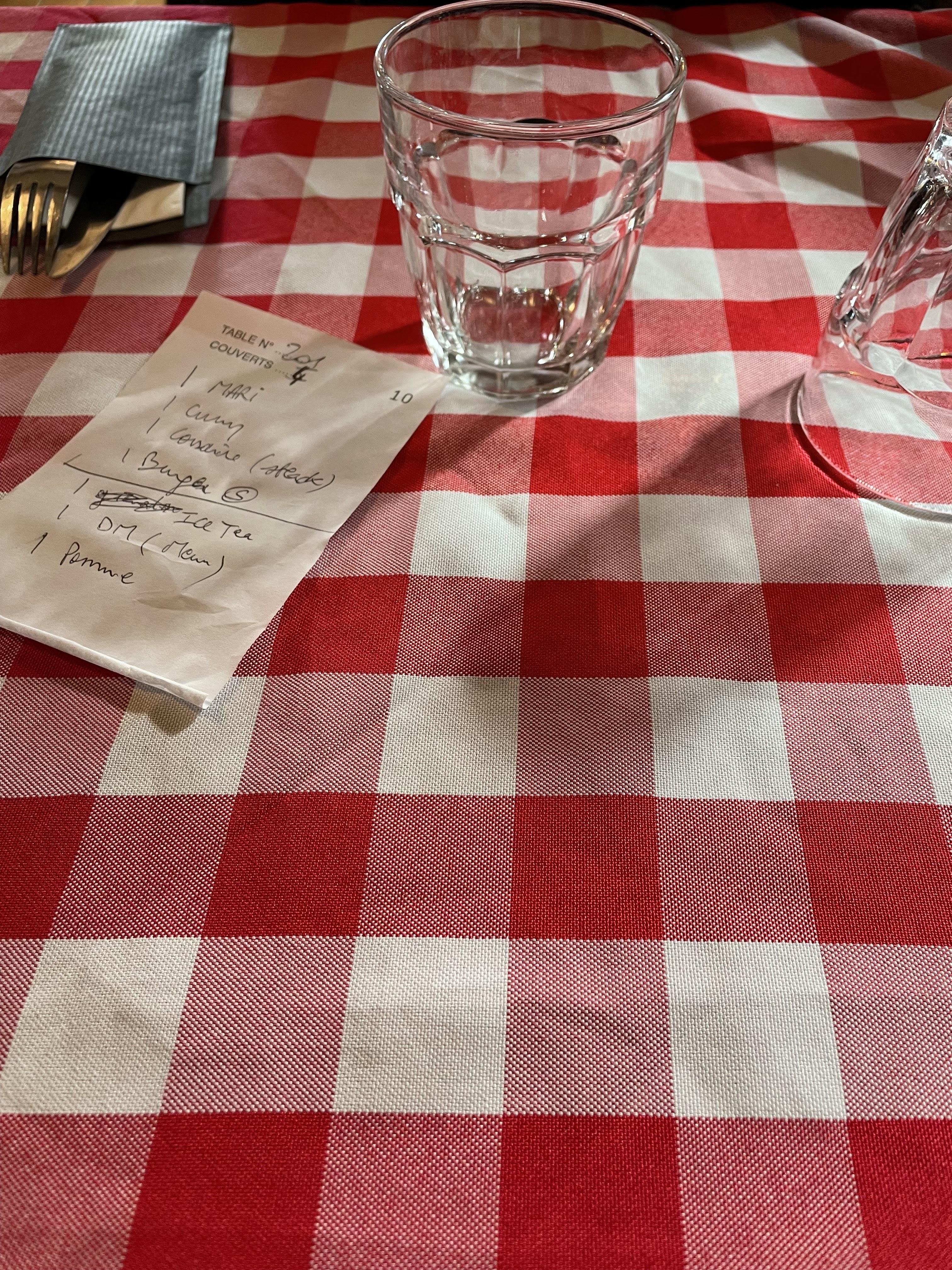 Juste un problème de service en salle. Le service en terrasse est assuré par une jeune stagiaire, mais si on lui passe une commande simple, en salle, elle ignore, ....comme cela peut arriver en Corse ou au Pays Basque :) Un serveur a fini par nous voir alors qu'on était sous leurs yeux.