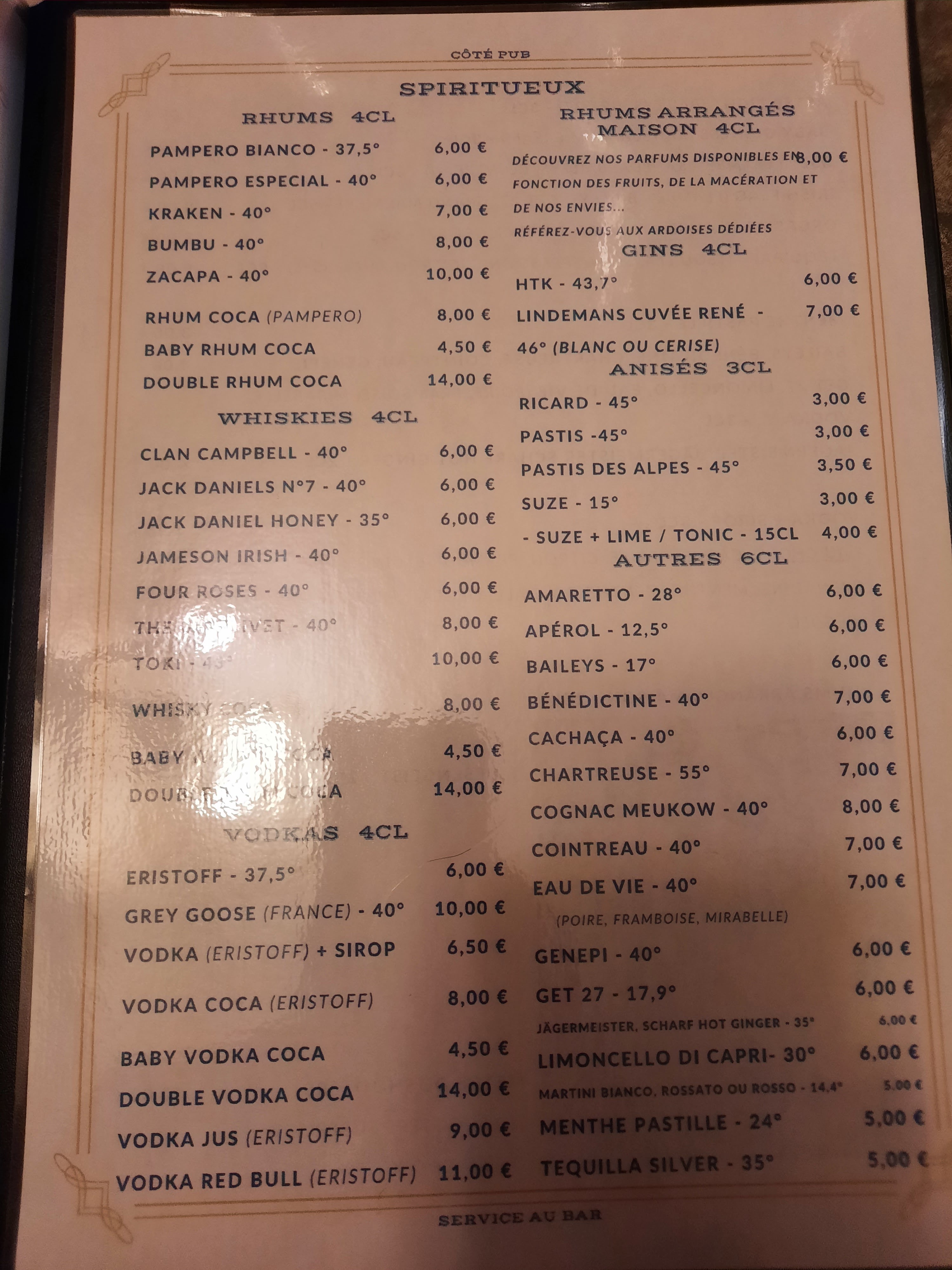 Le top a faire absolument je dirais même à tout prix ferme à 2 h. bière et repas au top bon choix pour le whisky. Bonne soirée en perspective.