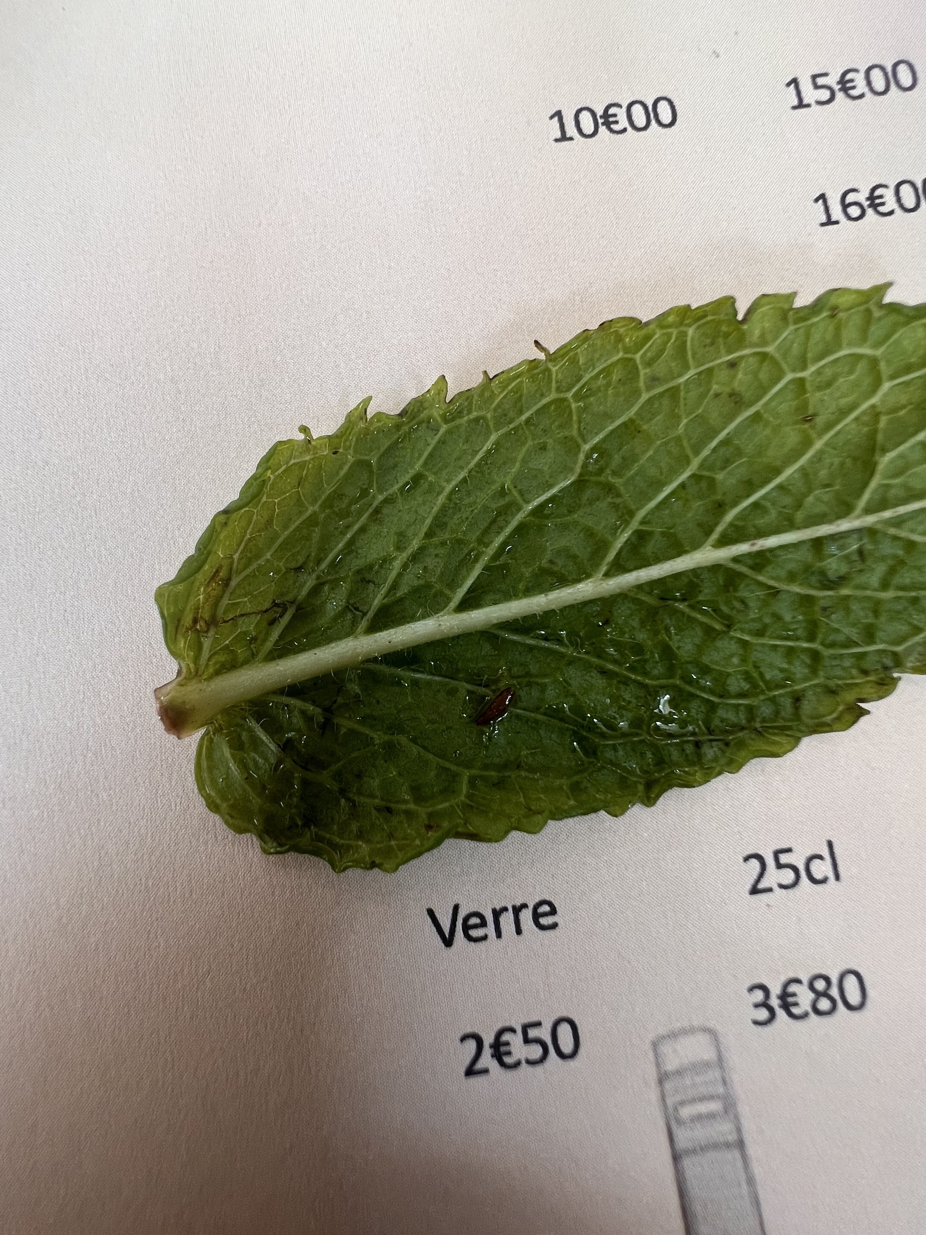 Les feuilles de menthes males lavées, les coques de vers encore présentes sur la menthe. A bannir, répugnants