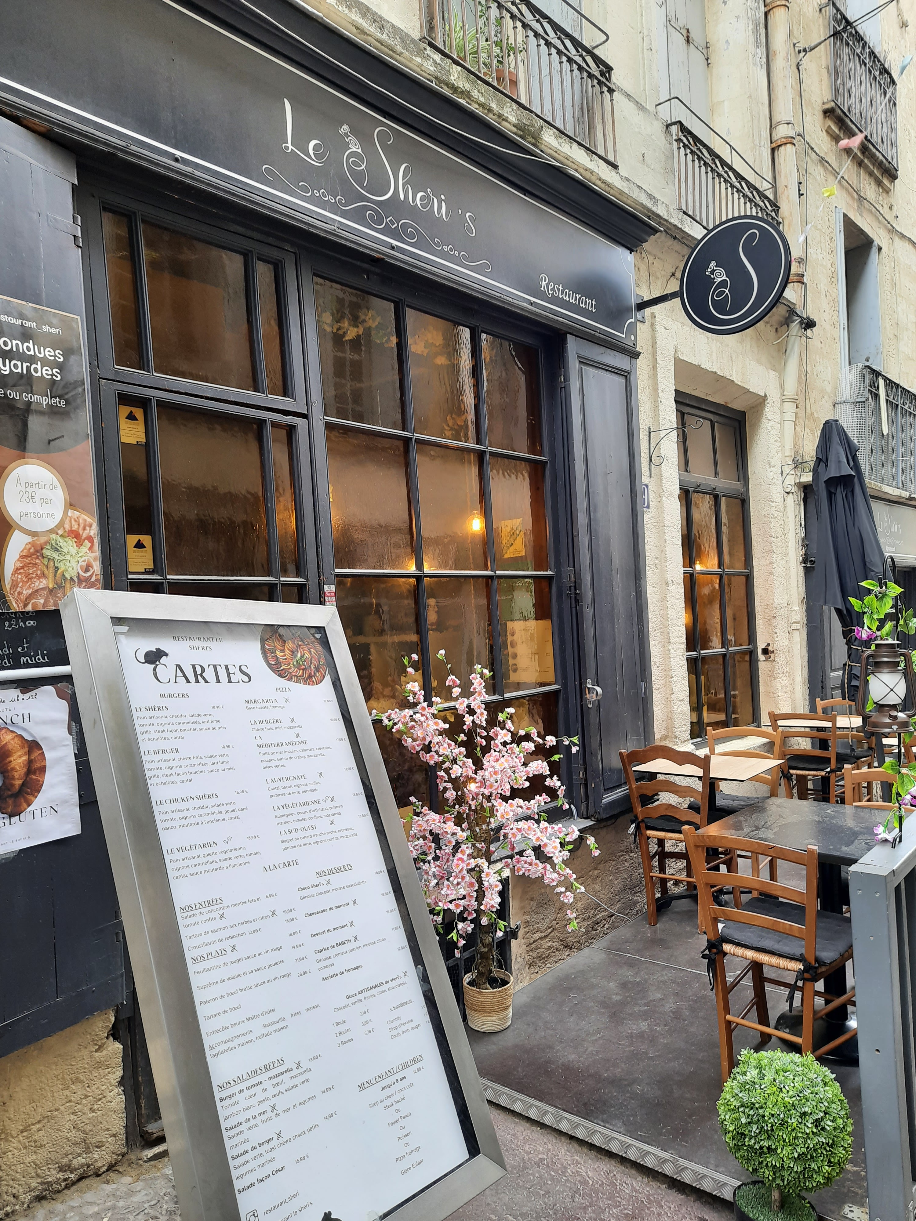 Nous avons mangé à Le Sheri’s avec mon copain. Le restaurant est situé dans le centre ville et présente une petite terrasse et décoration très sympathique. L’accueil était chaleureux. Le nouveau plat à la carte (le rouget accompagné d’oignons et de tranches de feuilletées) était délicieux. L’entrecôte était cuite à la perfection. C’était un vrai régal. Nous y retournerons les yeux fermés. Signé Anton Ego ;)