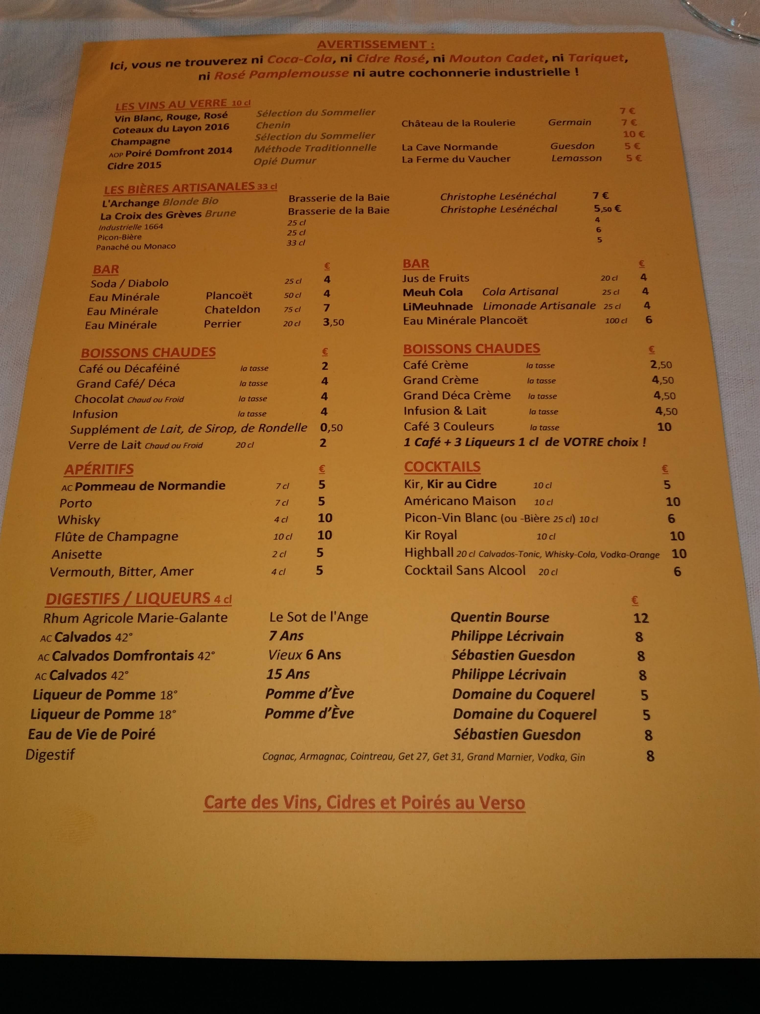 Il s'agit tout simplement d'un excellent restaurant. Les entrées, plats et desserts sont tous exquis, accompagnés d'excellentes recommandations en matière de vin et d’autres boissons de la région. Il faut impérativement déguster le pommeau et les cidres.