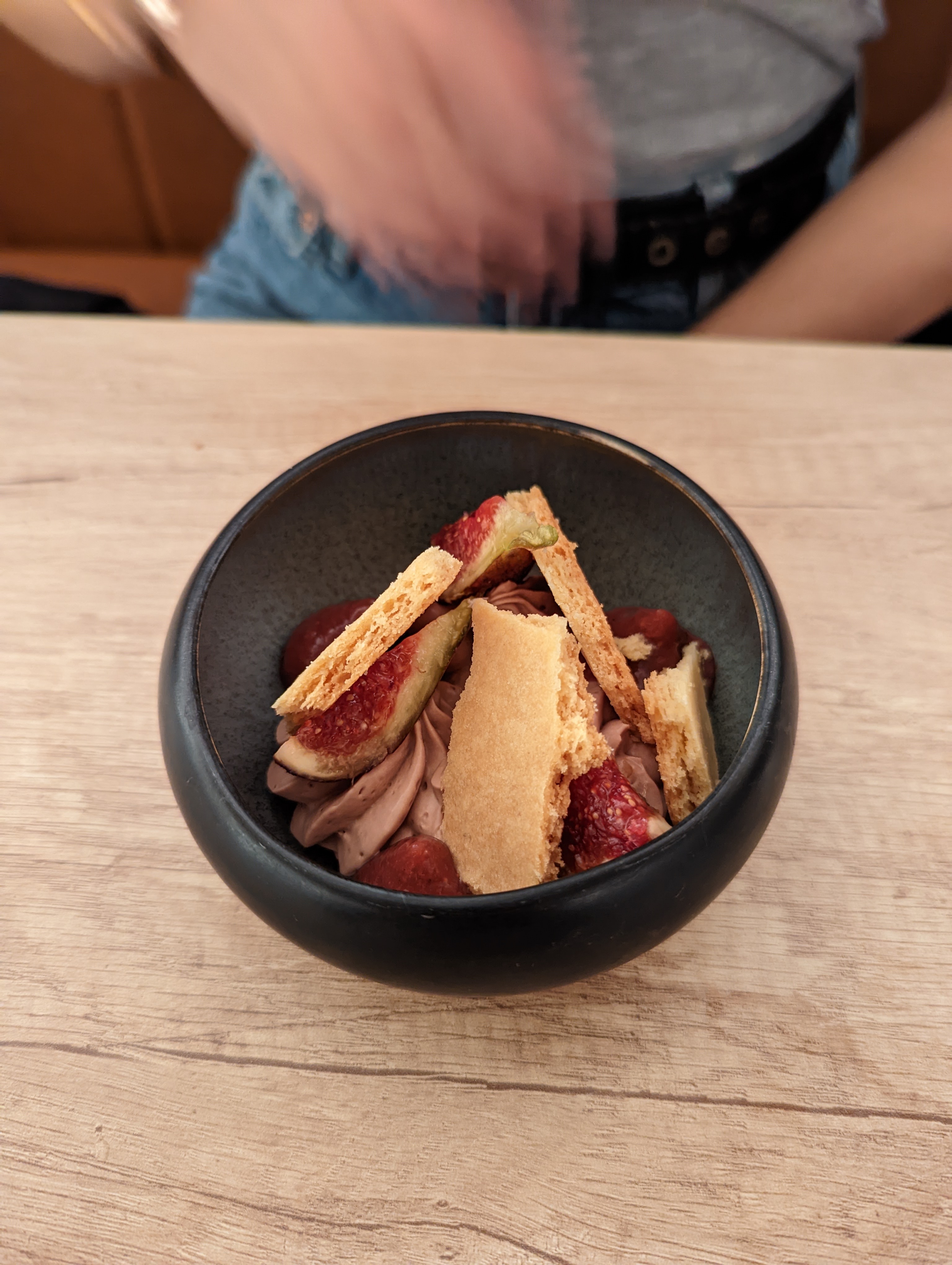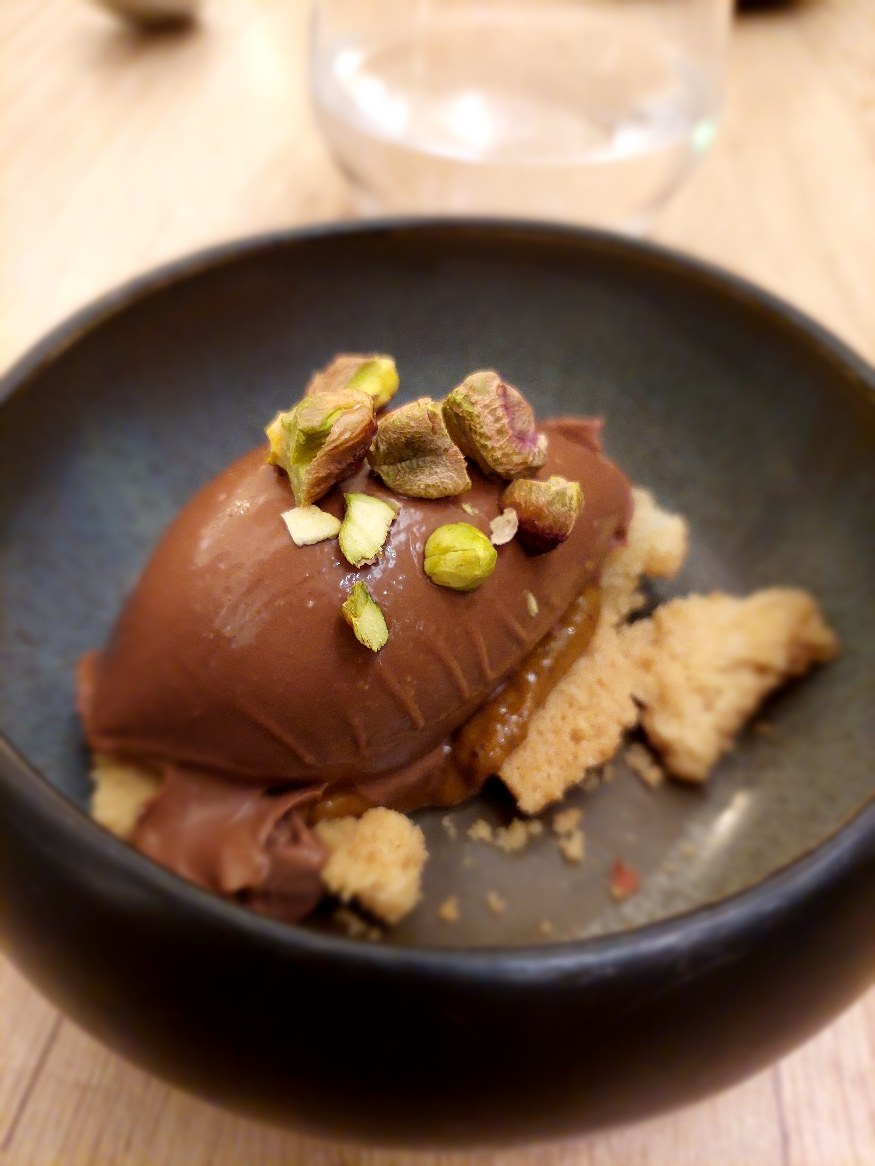 Un ensemble parfait de cohérence. Un cadre lumineux, chaleureux et agréable même si épuré, et un service remarquable de professionnalisme. Une carte qui qui varie constamment, avec des compostions et des suggestions de vins tout aussi bien choisies. Présentation, quantité, goût, texture, tout est là. Sauce de jus de viande, crème de noisette, confit de figues, ganache chocolat au lait… Tout invite à revenir à cette adresse pour tester les nouvelles recettes et saveurs proposées.