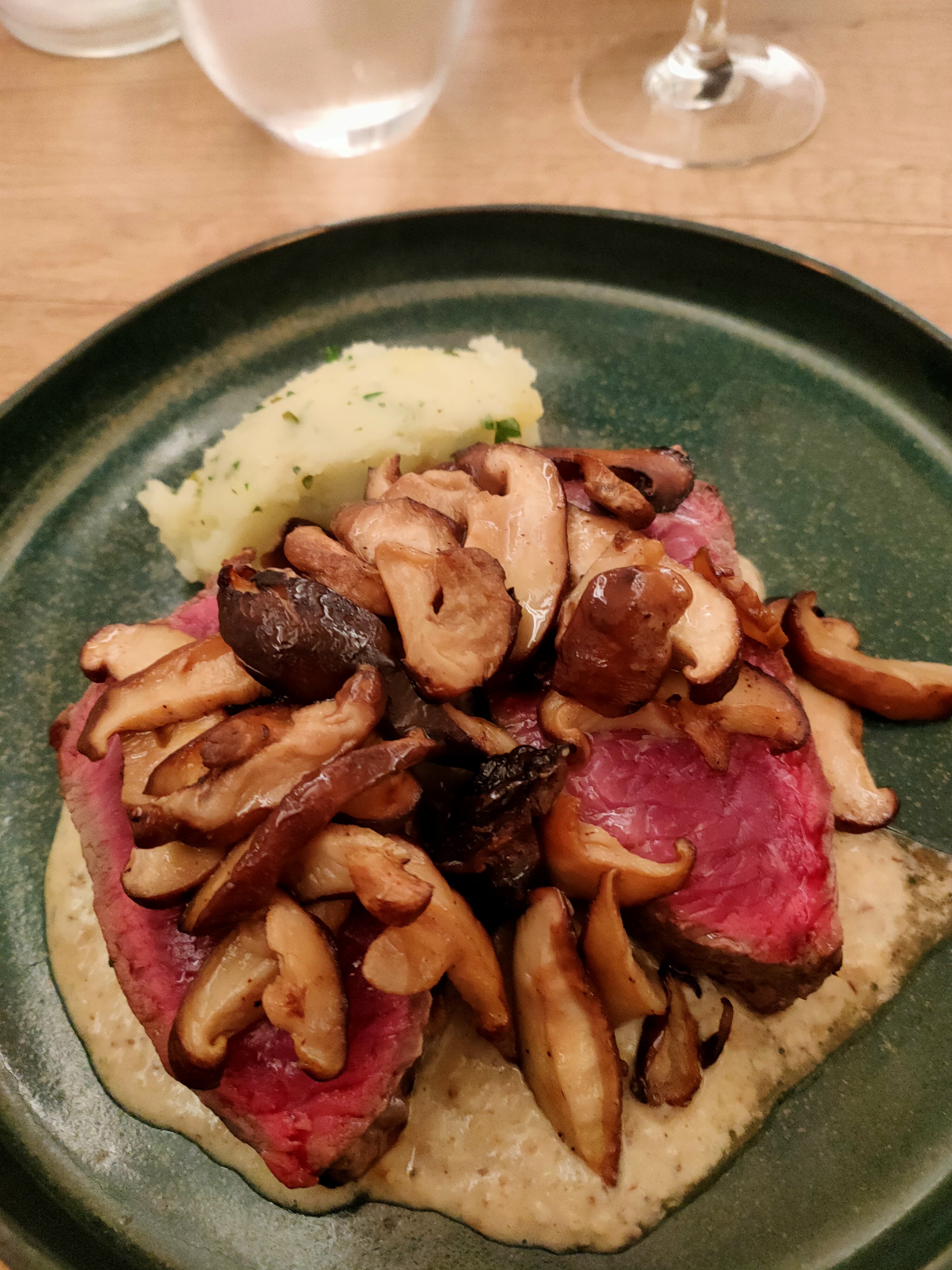 Très joli petit restaurant avec des plats plein de saveurs. Le service était très bien, calme et efficace. Faux filet de boeuf saignant = cuisson parfaite (cuit autour mais bien saignant à l'intérieur). Il n'y a que 3 entrées, 3 plats et 3 desserts mais tout est cuisiné parfaitement. Prix très correcte : 3 plats, 1 grande bouteille d'eau, 2 verres de vin pour 47 euros (1 personne)