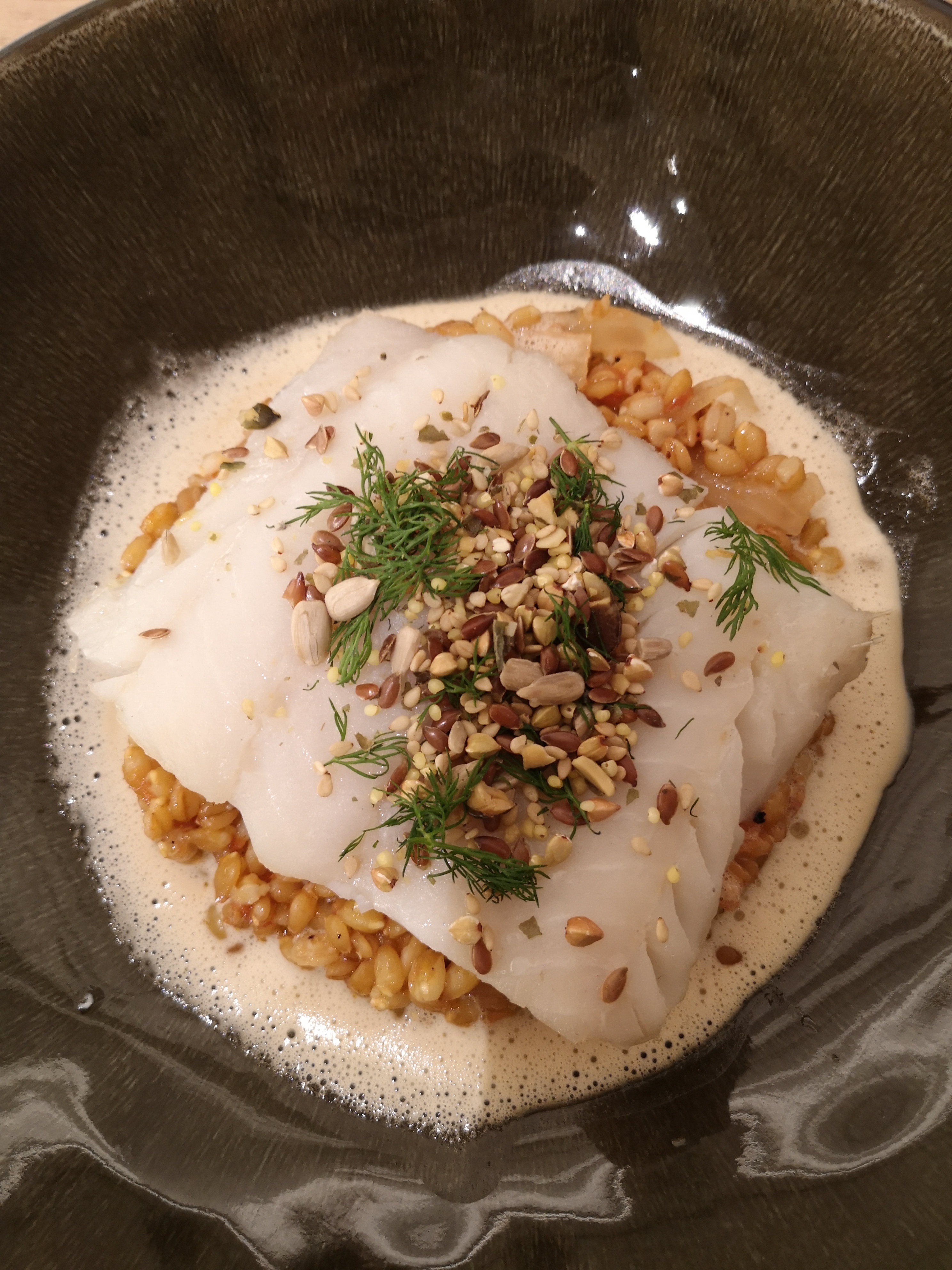 Superbe restaurant dans une ambiance lumineuse et chaleureuse. Une cuisine fine, raffinée, simple, équilibrée, qui met en valeur chaque produits et ingrédient. Entrées délicieuses : Brocolis – Topinambour – Menthe, fraîcheur garantie mais aussi Foccaccia – Gambas – Panais, sublime de goût. Le plat : beau filet de Lieu savoureux – Patate Douce d'une douceur exquise – financier de Parmesan, tout en finesse et en bon goût. En desserts : un équivalent au tiramisu revisité, Financier – Café – Mascarpone – Amaretto, d'une douceur exquise ainsi q'une mousse Chocolat au lait – fins morceaux d'Orange – Noisette, délicat et rafraîchissant, une belle alliance. Le tout avec un prix très raisonnable. Un agréable moment passé, une cuisine simple et délicieuse. Merci.